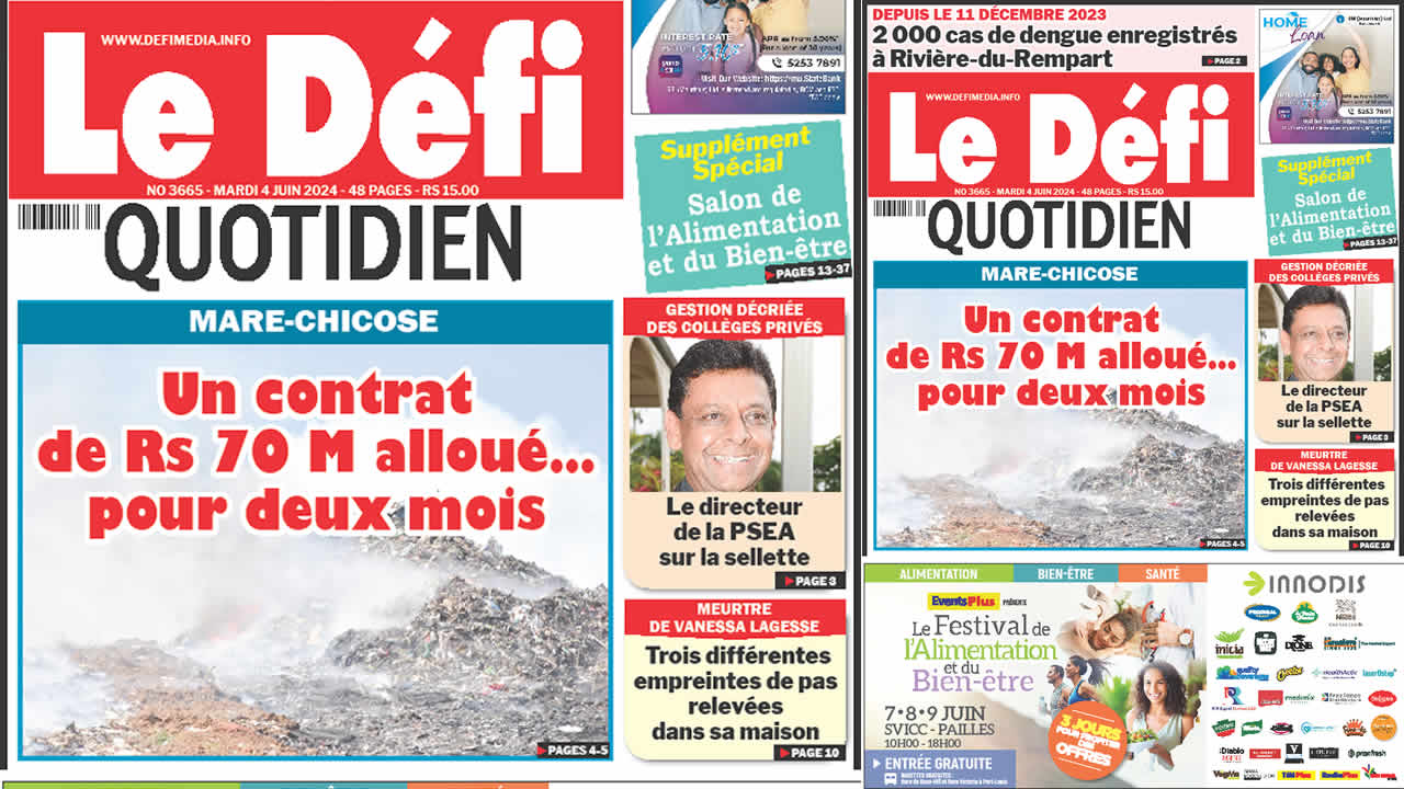 ? Voici la Une du Défi Quotidien. Le journal est en vente à Rs 15 l'exemplaire aux endroits habituels (supermarchés, boutiques, tabagies, superettes). Bonne lecture !