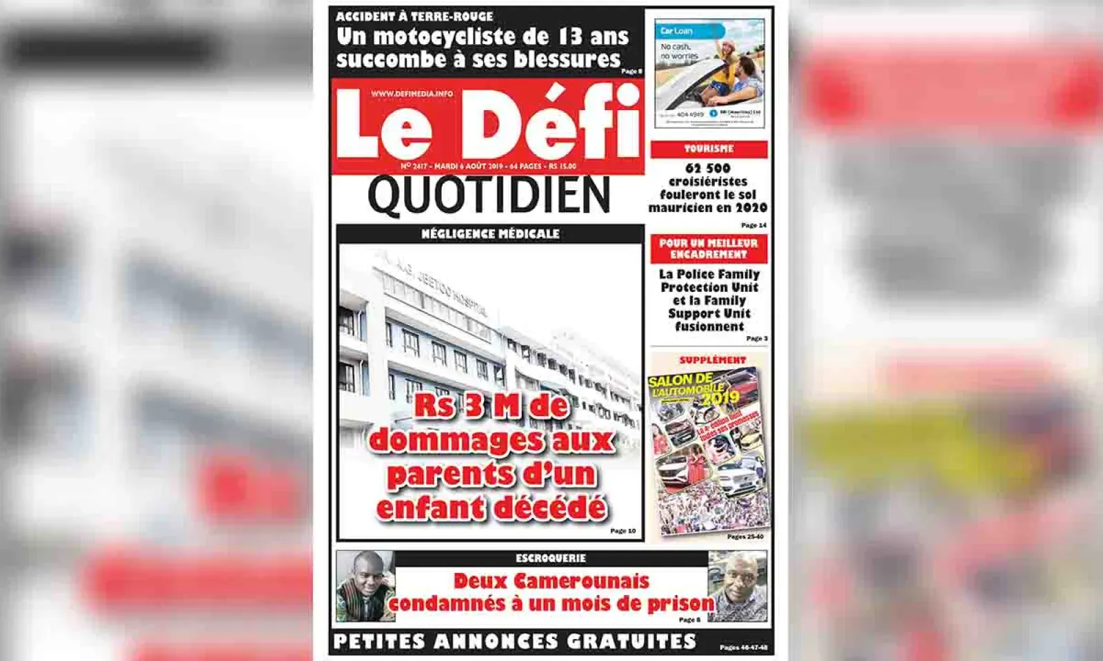 Rs 3 M de dommages aux parents d’un enfant décédé