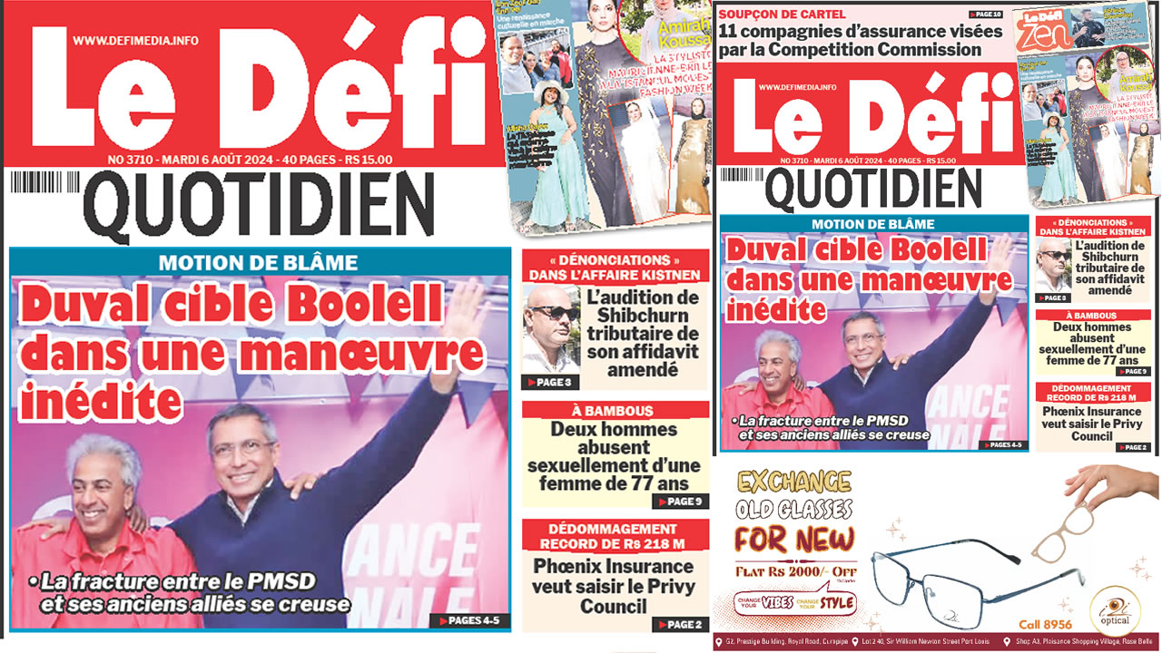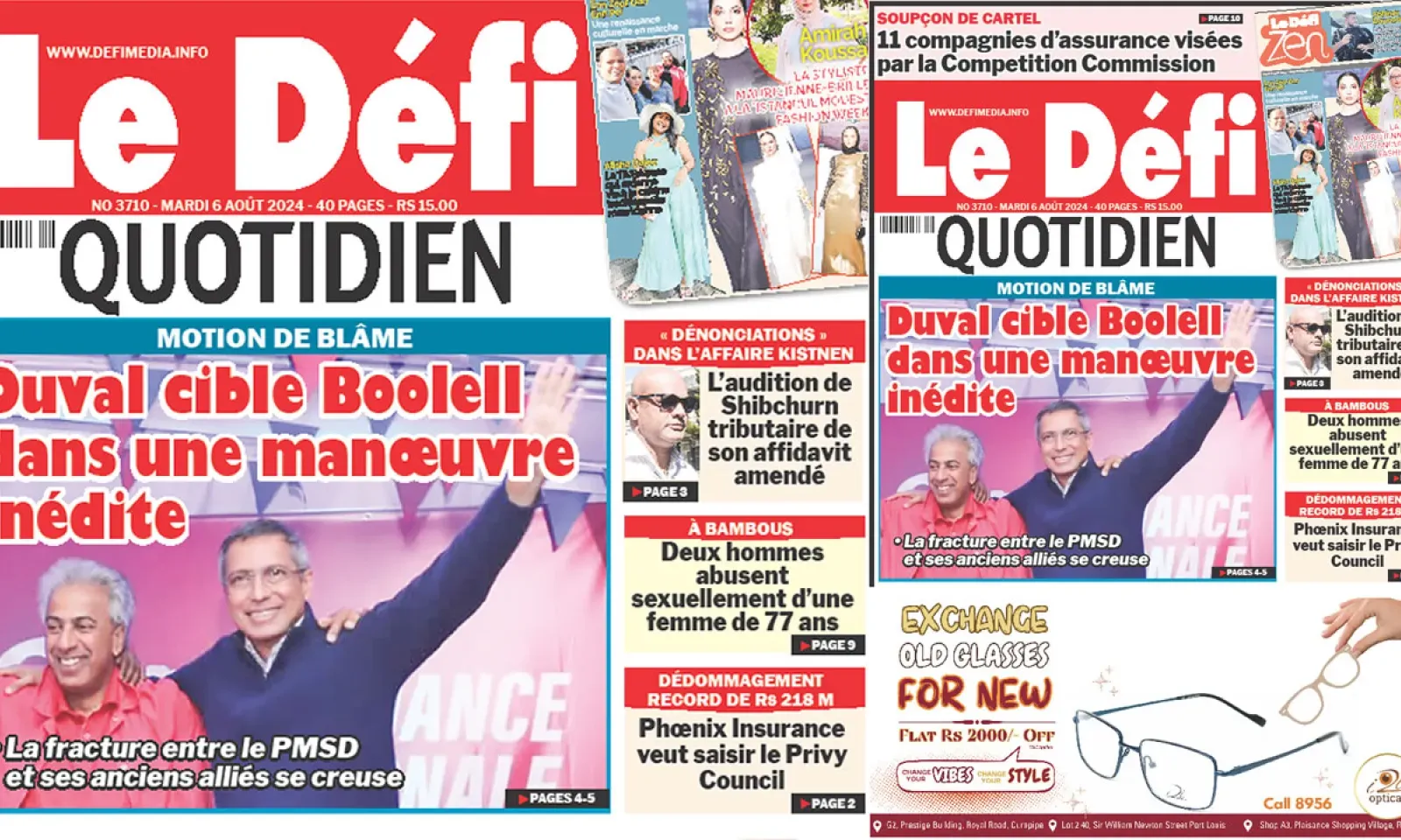 ? Voici la Une du Défi Quotidien. Le journal est en vente à Rs 15 l'exemplaire aux endroits habituels (supermarchés, boutiques, tabagies, superettes). Bonne lecture !