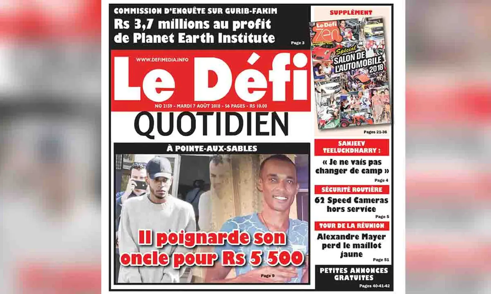 Jean Marc Benjamin Lisette, âgé de 39 ans, a été poignardé au cœur par son neveu, Brandon Lisette, 20 ans, lors d’une dispute familiale, le dimanche 5 août, à Pointe-aux-Sables. Transportée d’urgence à l’hôpital Dr A. G. Jeetoo, la victime n’a pas survécu à ses blessures. Une somme de Rs 5 500 serait à l’origine du drame.