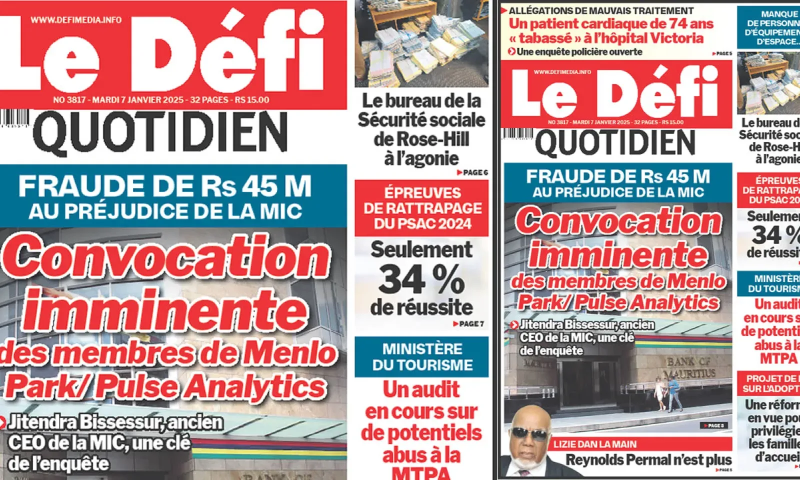 ? Voici la Une du Défi Quotidien. Le journal est en vente à Rs 15 l'exemplaire aux endroits habituels (supermarchés, boutiques, tabagies, superettes). Bonne lecture !
