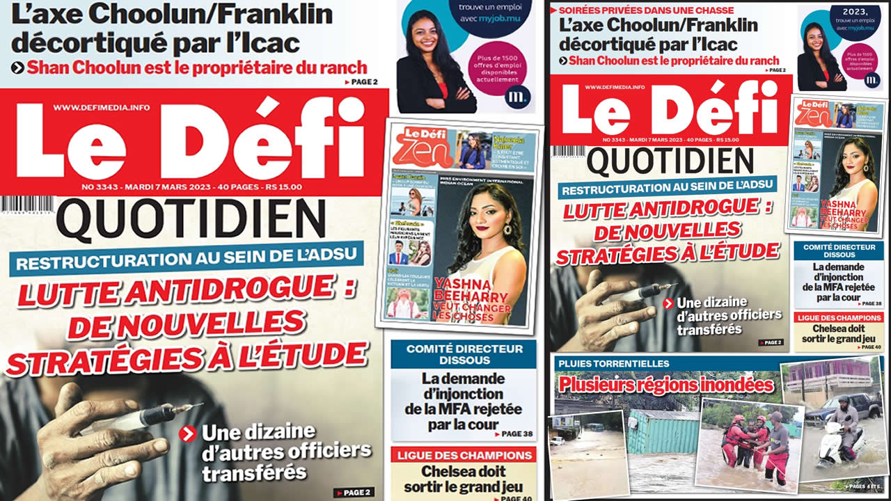 ? Voici la Une du Défi Quotidien. Le journal est en vente à Rs 15 l'exemplaire aux endroits habituels (supermarchés, boutiques, tabagies, superettes). Bonne lecture !