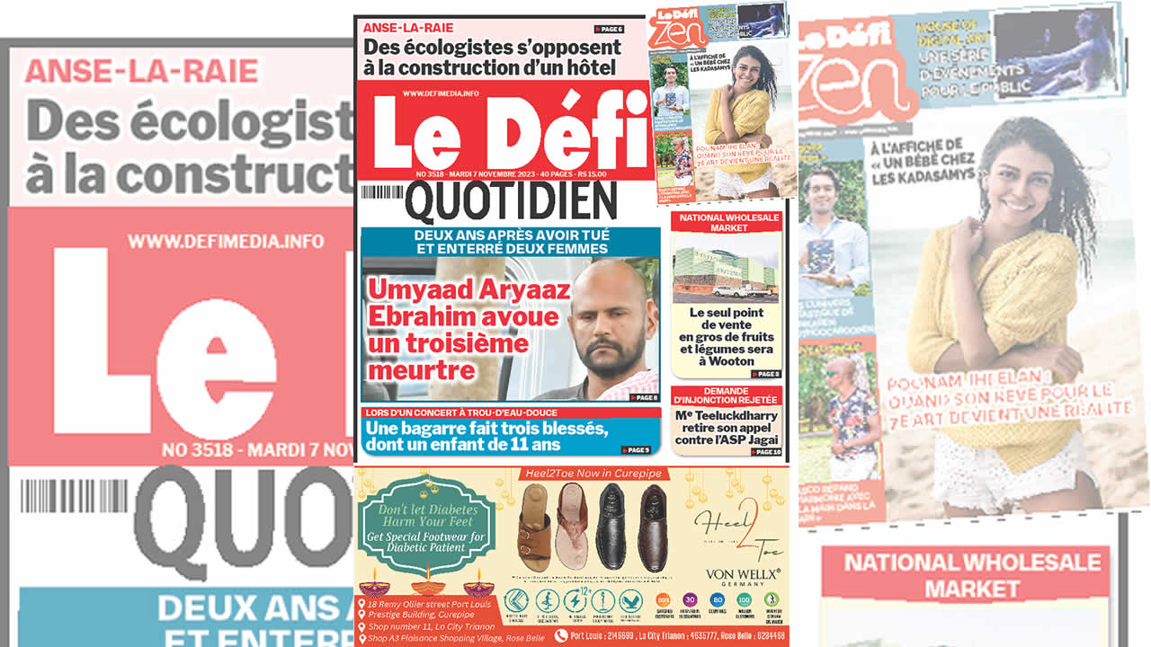 ? Voici la Une du Défi Quotidien. Le journal est en vente à Rs 15 l'exemplaire aux endroits habituels (supermarchés, boutiques, tabagies, superettes). Bonne lecture !