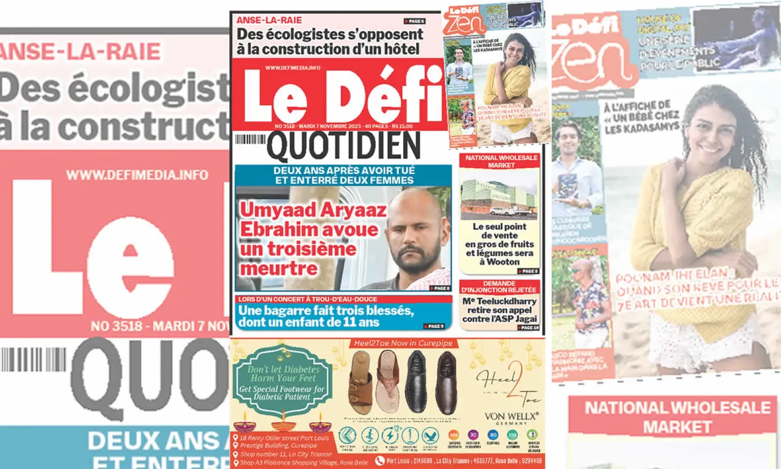 Voici la une du Défi Quotidien de ce Mardi 07 Novembre 2023