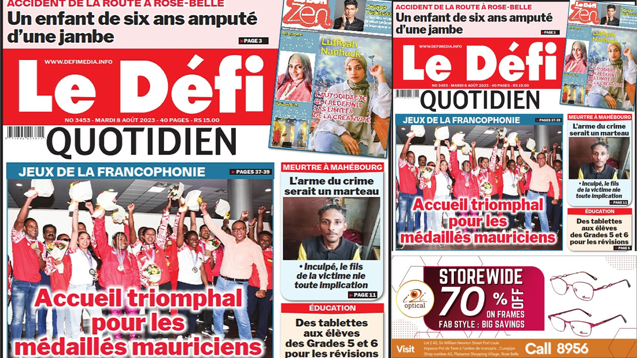 ? Voici la Une du Défi Quotidien. Le journal est en vente à Rs 15 l'exemplaire aux endroits habituels (supermarchés, boutiques, tabagies, superettes). Bonne lecture !