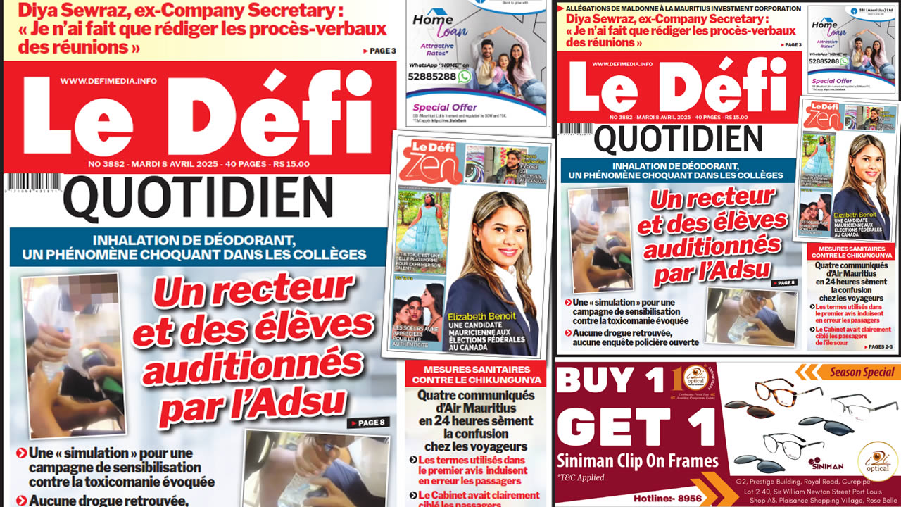 ? Voici la Une du Défi Quotidien. Le journal est en vente à Rs 15 l'exemplaire aux endroits habituels (supermarchés, boutiques, tabagies, superettes). Bonne lecture !