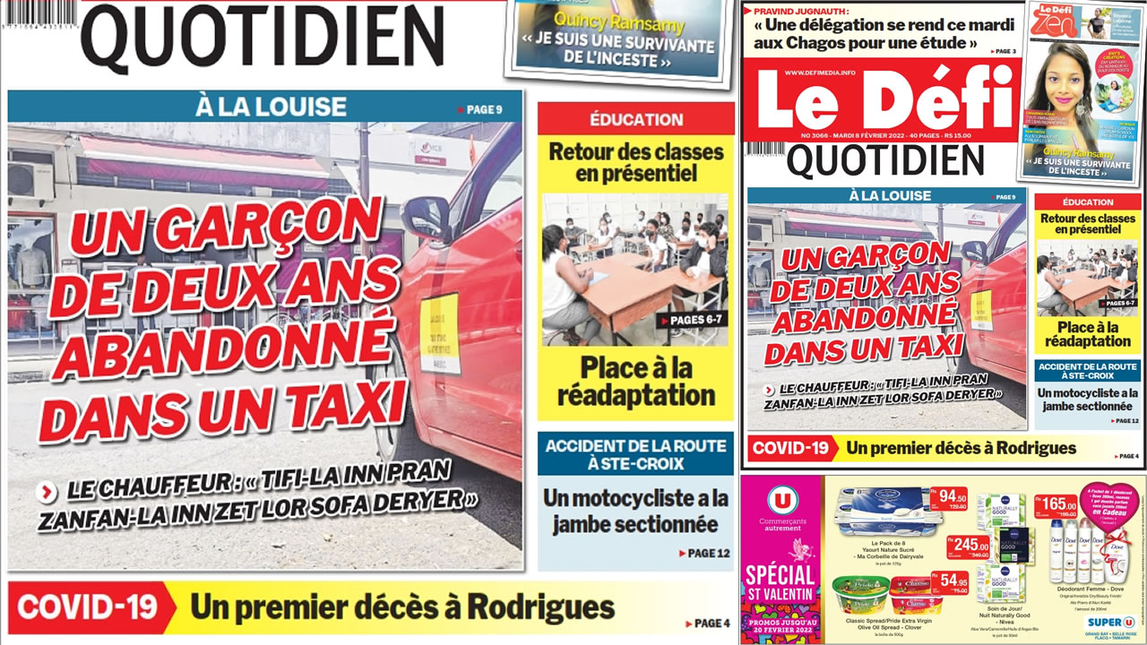 ? Voici la Une du Défi Quotidien. Le journal est en vente à Rs 15 l'exemplaire aux endroits habituels (supermarchés, boutiques, tabagies, superettes). Bonne lecture !