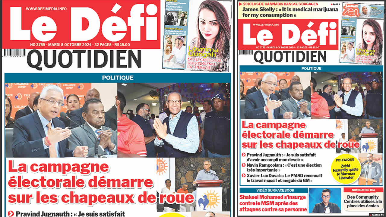? Voici la Une du Défi Quotidien. Le journal est en vente à Rs 15 l'exemplaire aux endroits habituels (supermarchés, boutiques, tabagies, superettes). Bonne lecture !