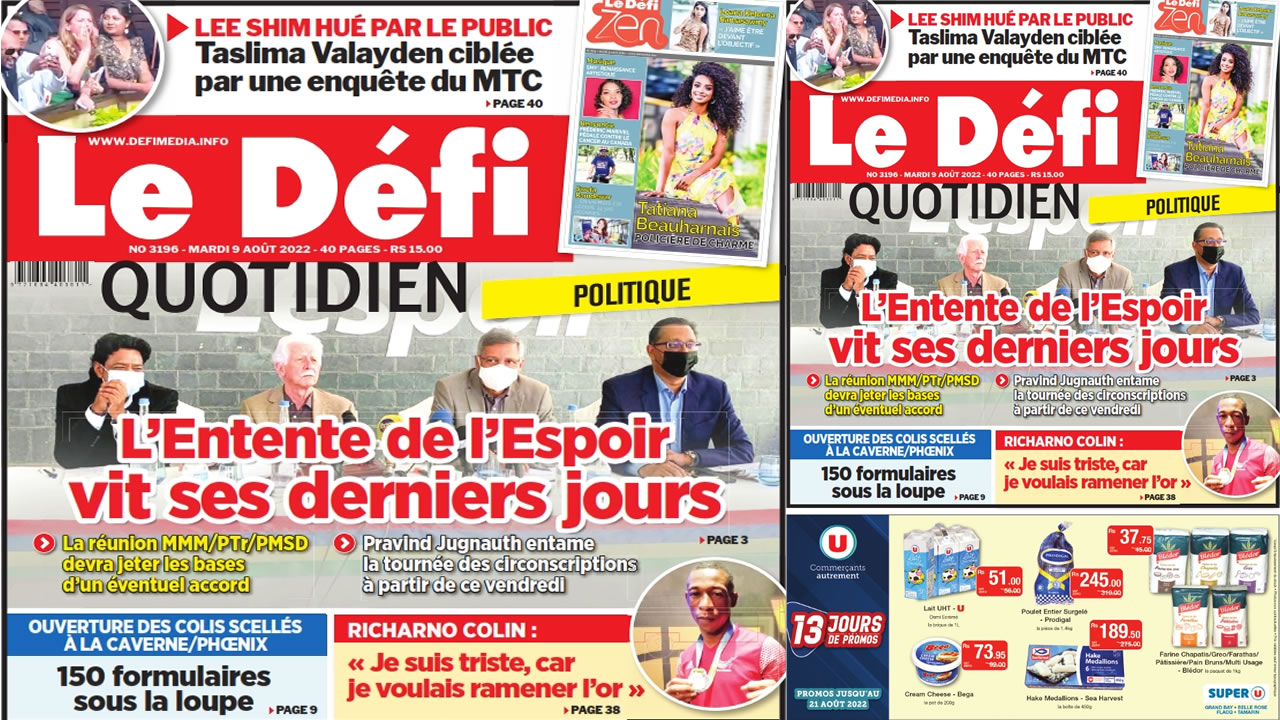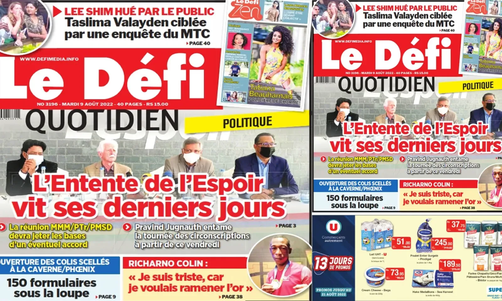 Voici la une du Défi Quotidien de ce mardi 09 Août 2022