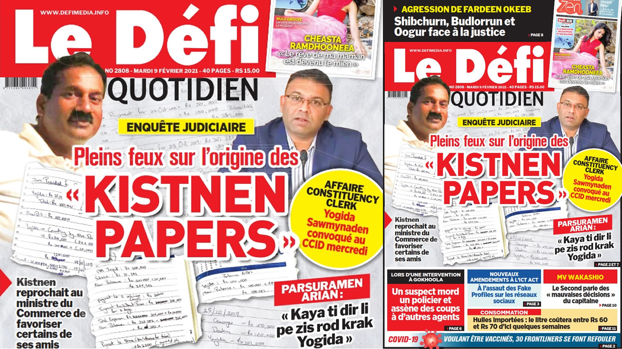 ? Voici la Une du Défi Quotidien. Le journal est en vente à Rs 15 l'exemplaire aux endroits habituels (supermarchés, boutiques, tabagies, superettes). Bonne lecture !