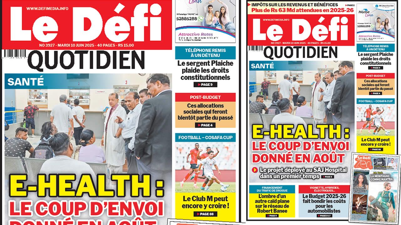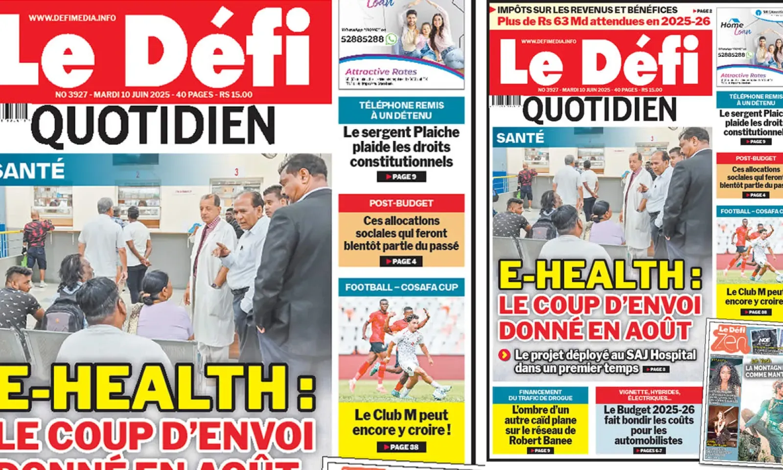 ? Voici la Une du Défi Quotidien. Le journal est en vente à Rs 15 l'exemplaire aux endroits habituels (supermarchés, boutiques, tabagies, superettes). Bonne lecture !