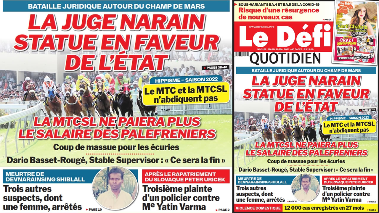 ? Voici la Une du Défi Quotidien. Le journal est en vente à Rs 15 l'exemplaire aux endroits habituels (supermarchés, boutiques, tabagies, superettes). Bonne lecture !