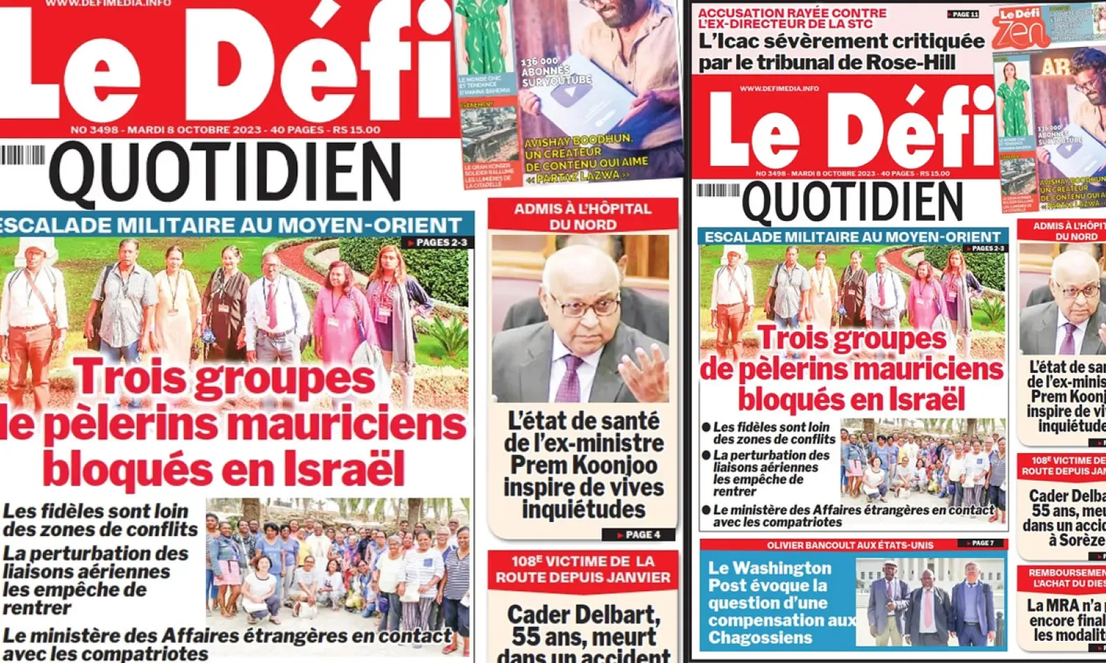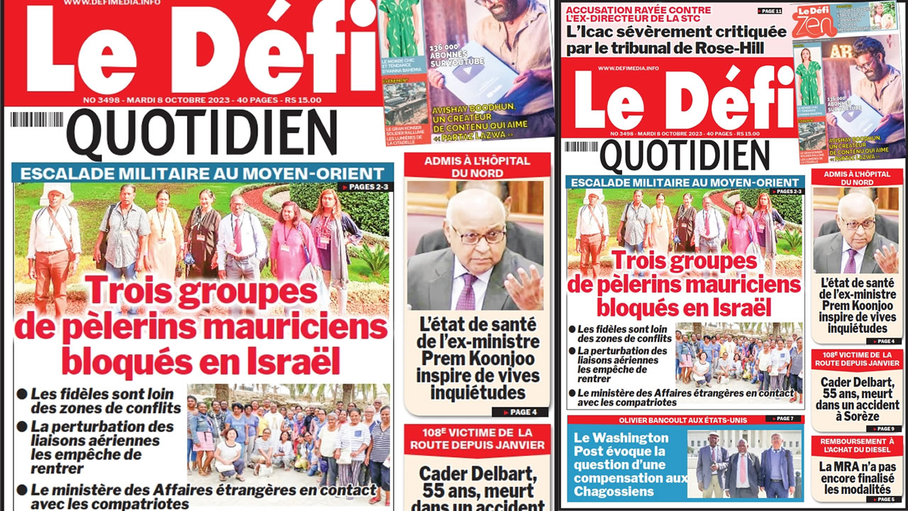 ? Voici la Une du Défi Quotidien. Le journal est en vente à Rs 15 l'exemplaire aux endroits habituels (supermarchés, boutiques, tabagies, superettes). Bonne lecture !