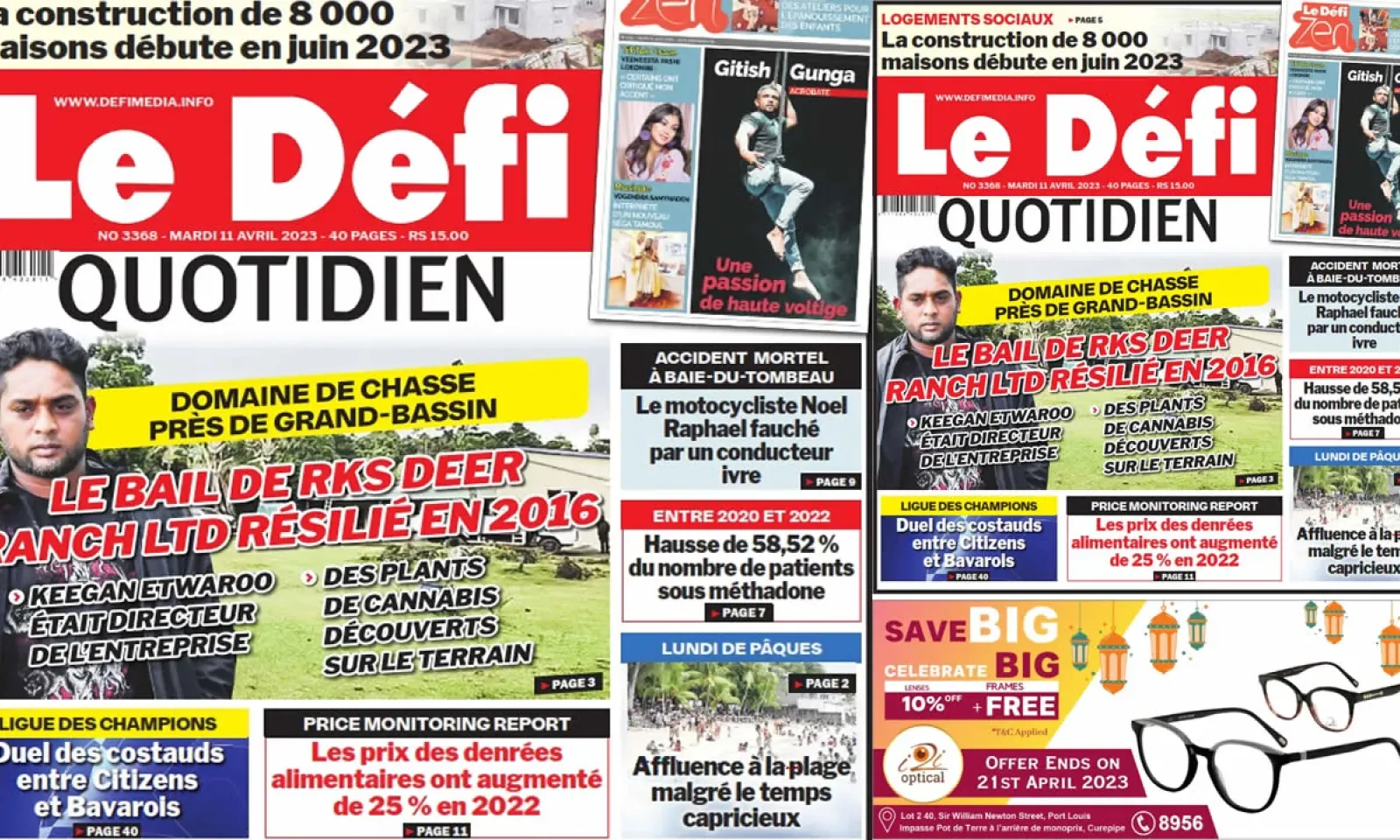 ? Voici la Une du Défi Quotidien. Le journal est en vente à Rs 15 l'exemplaire aux endroits habituels (supermarchés, boutiques, tabagies, superettes). Bonne lecture !