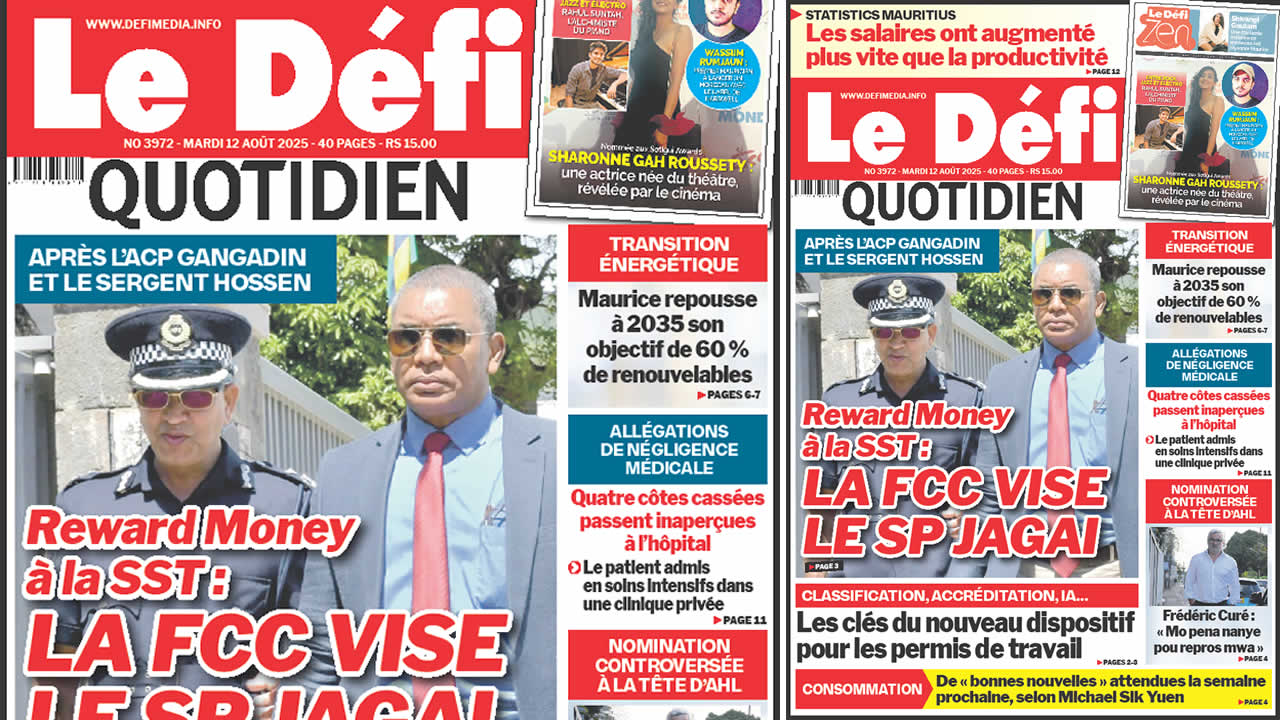 ? Voici la Une du Défi Quotidien. Le journal est en vente à Rs 15 l'exemplaire aux endroits habituels (supermarchés, boutiques, tabagies, superettes). Bonne lecture !