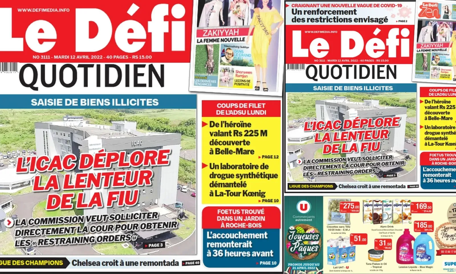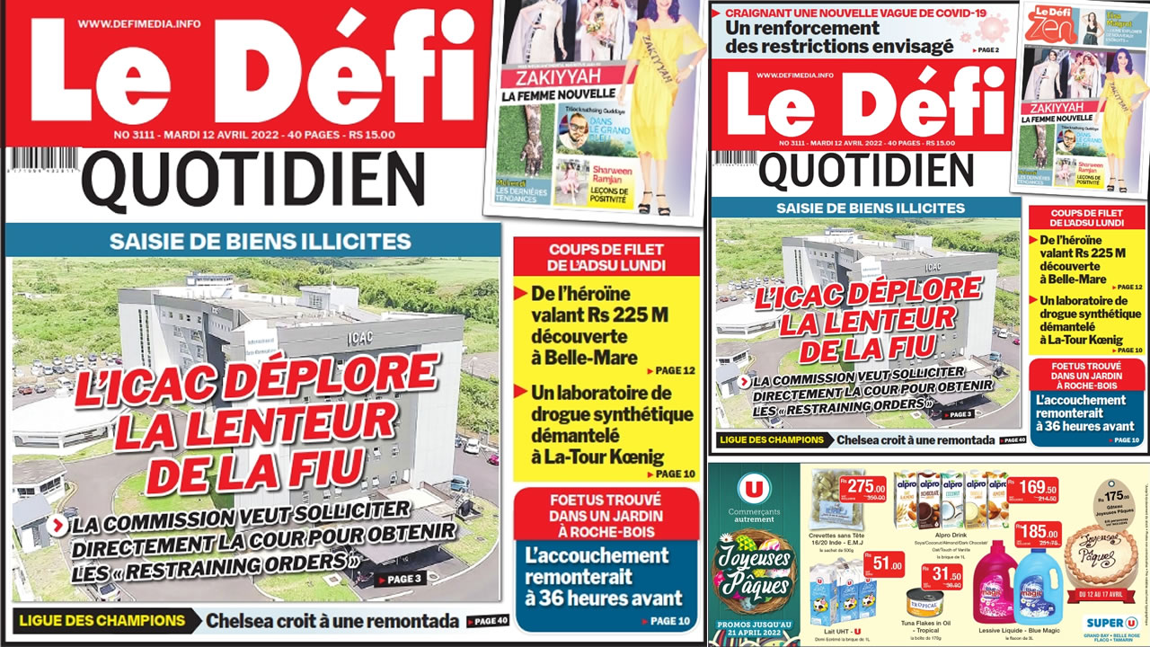 ? Voici la Une du Défi Quotidien. Le journal est en vente à Rs 15 l'exemplaire aux endroits habituels (supermarchés, boutiques, tabagies, superettes). Bonne lecture !