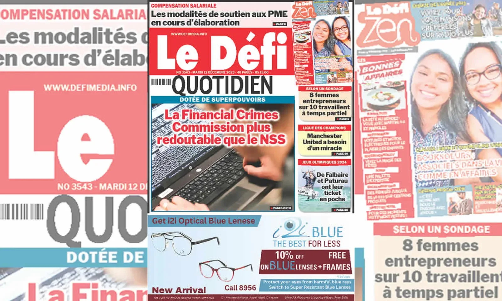 ? Voici la Une du Défi Quotidien. Le journal est en vente à Rs 15 l'exemplaire aux endroits habituels (supermarchés, boutiques, tabagies, superettes). Bonne lecture !