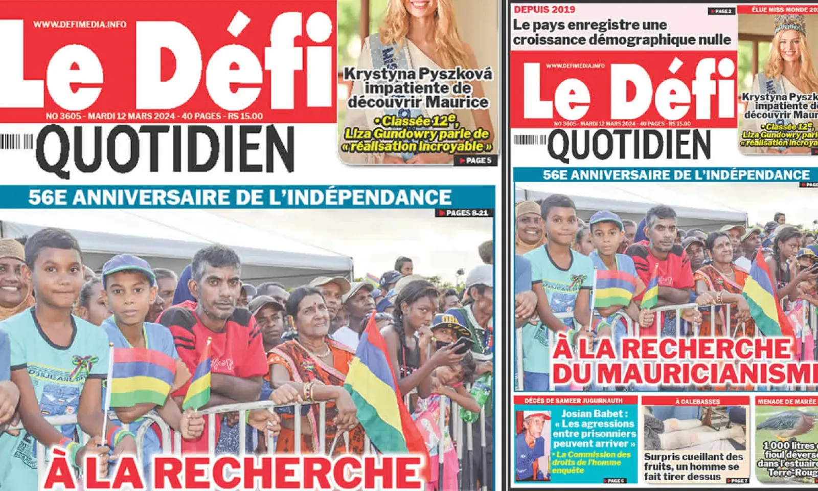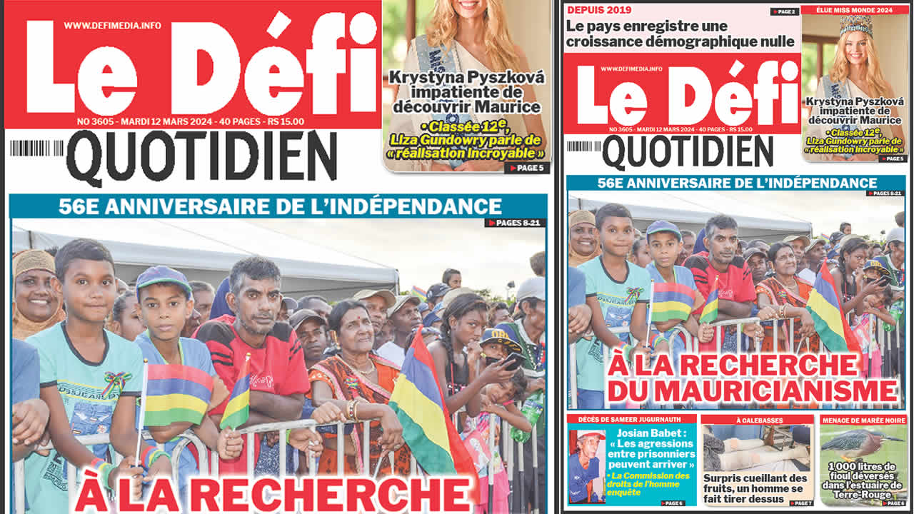 ? Voici la Une du Défi Quotidien. Le journal est en vente à Rs 15 l'exemplaire aux endroits habituels (supermarchés, boutiques, tabagies, superettes). Bonne lecture !