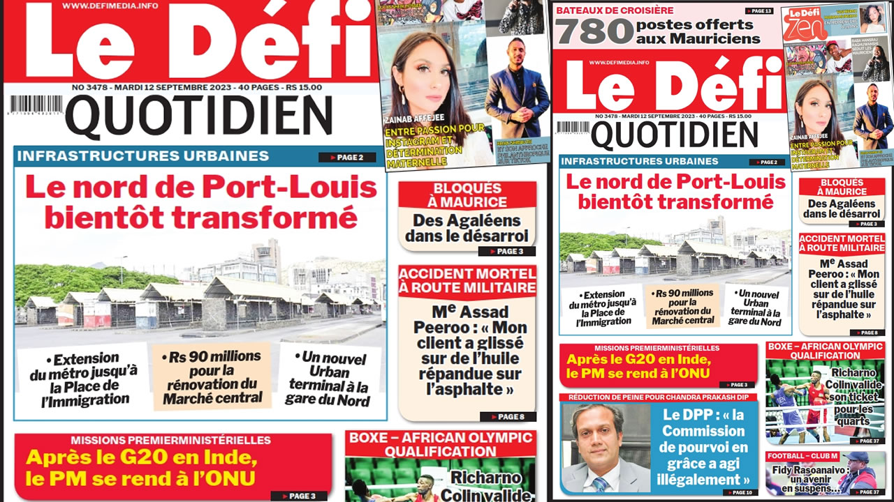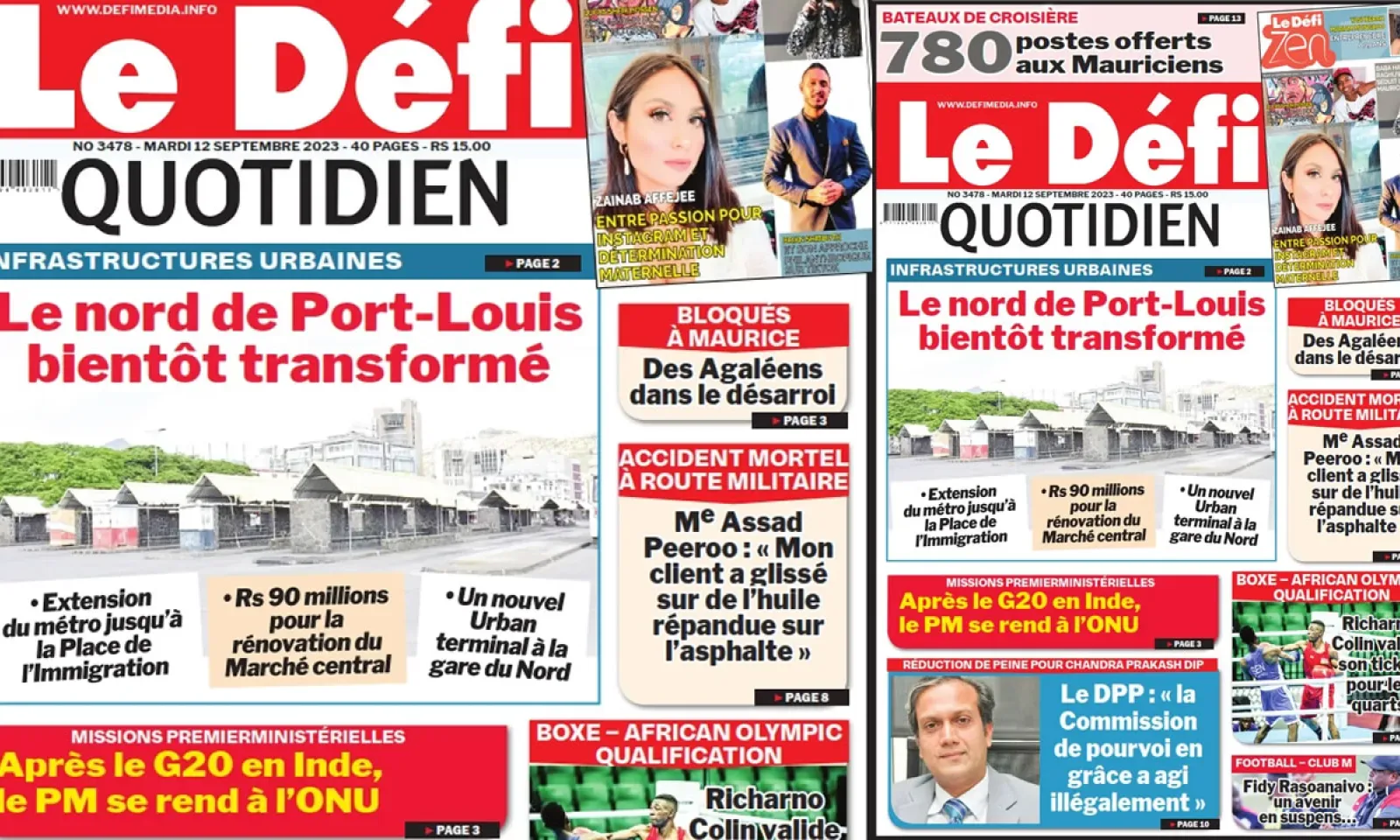 ? Voici la Une du Défi Quotidien. Le journal est en vente à Rs 15 l'exemplaire aux endroits habituels (supermarchés, boutiques, tabagies, superettes). Bonne lecture !