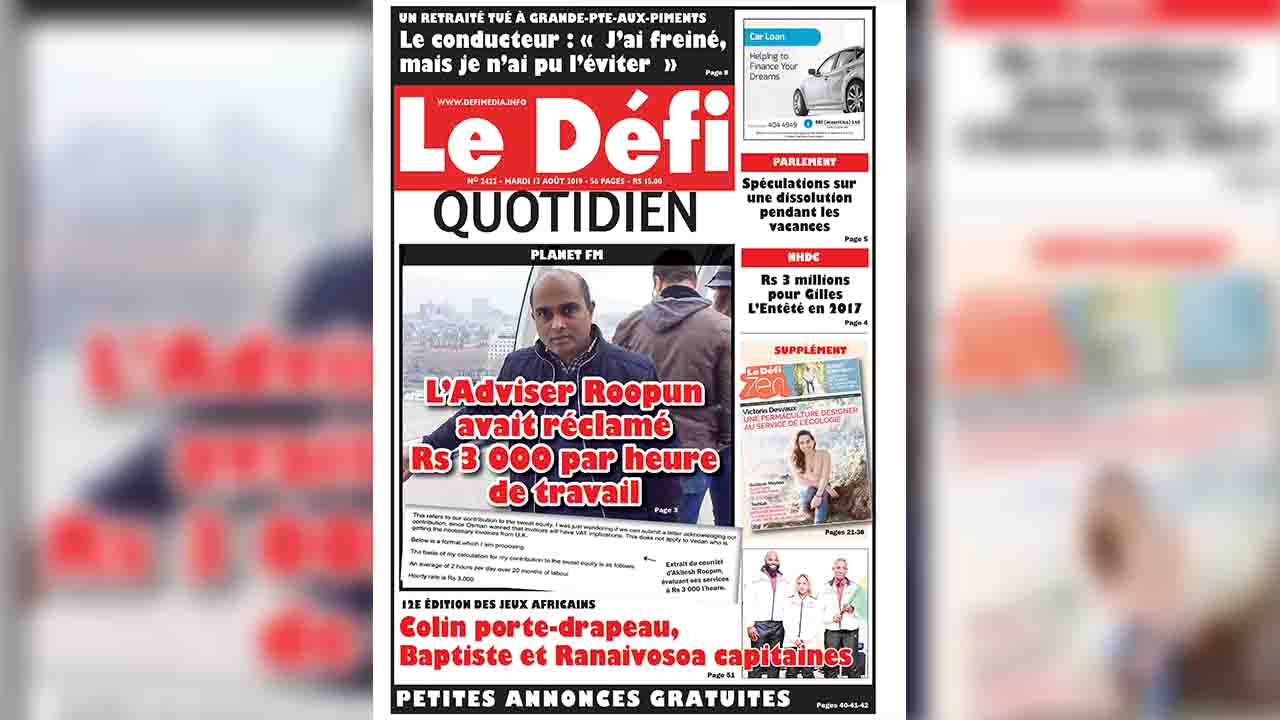 Le conseiller au ministère des Affaires étrangères, Akilesh Roopun, a réclamé Rs 3 000 par heure pour ses services à Planet FM. Coût total : Rs 5 millions qu’il devait initialement obtenir sous forme d’actions. S’il a d’abord nié l’information, le conseiller change son fusil d’épaule.