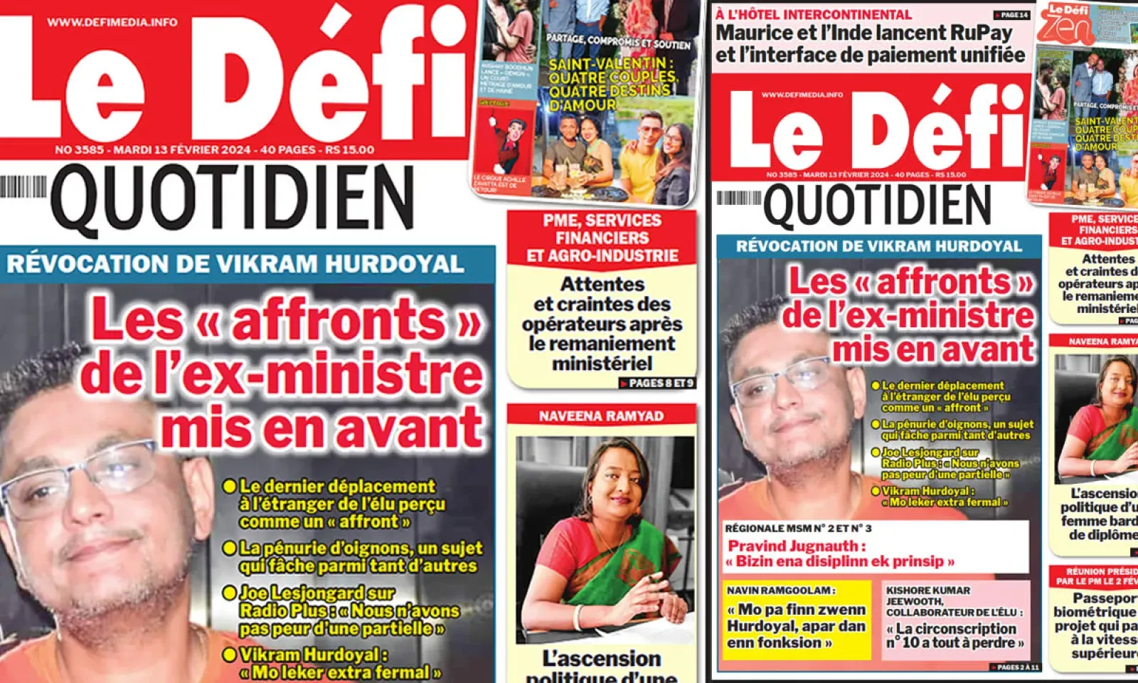 ? Voici la Une du Défi Quotidien. Le journal est en vente à Rs 15 l'exemplaire aux endroits habituels (supermarchés, boutiques, tabagies, superettes). Bonne lecture !