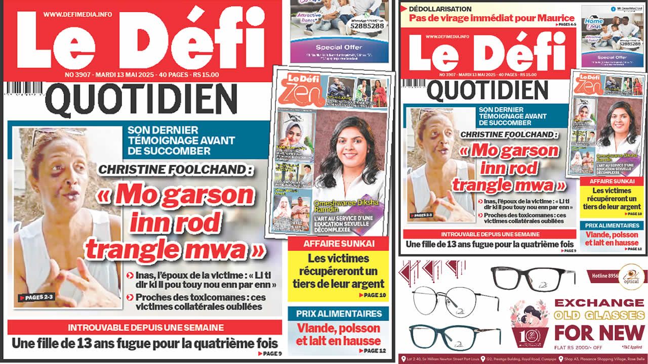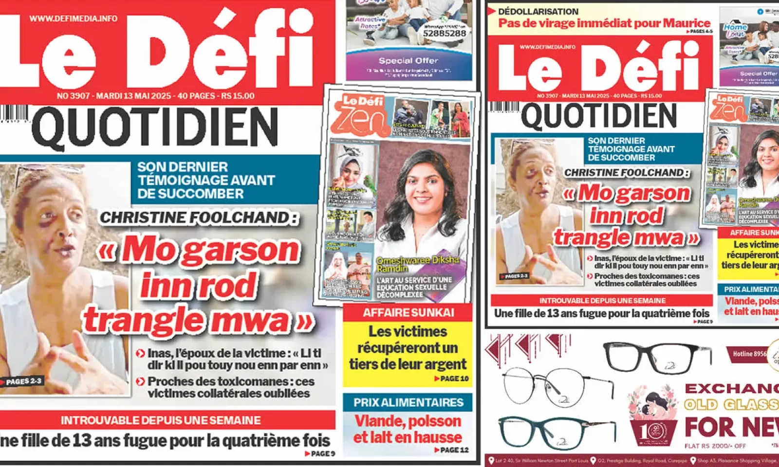 ? Voici la Une du Défi Quotidien. Le journal est en vente à Rs 15 l'exemplaire aux endroits habituels (supermarchés, boutiques, tabagies, superettes). Bonne lecture !