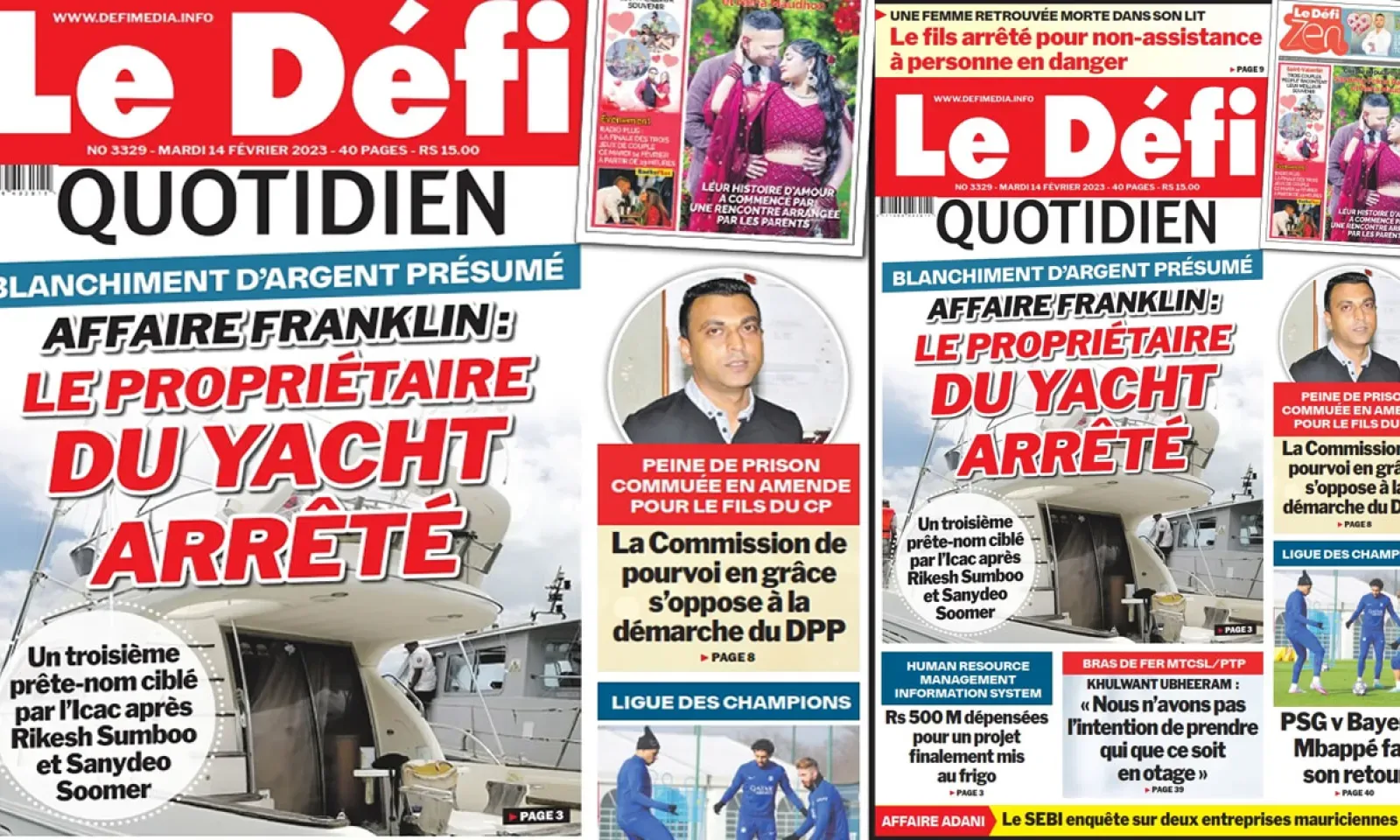 ? Voici la Une du Défi Quotidien. Le journal est en vente à Rs 15 l'exemplaire aux endroits habituels (supermarchés, boutiques, tabagies, superettes). Bonne lecture !