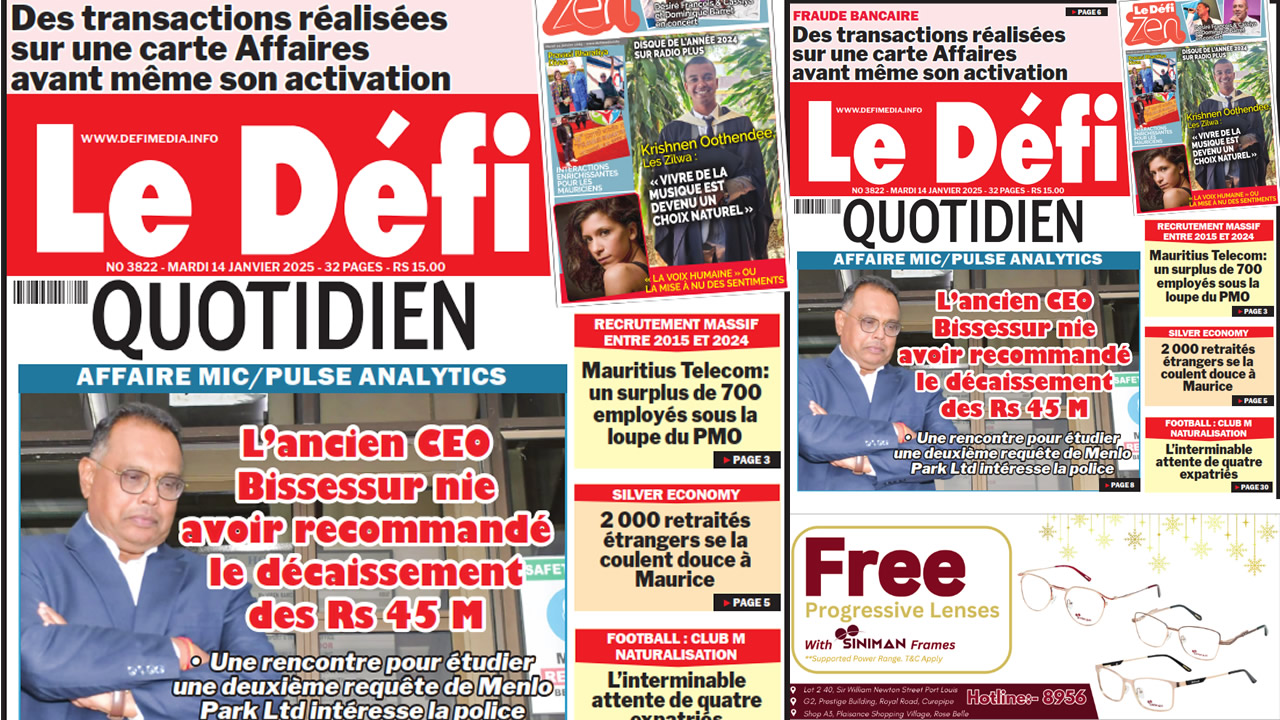 ? Voici la Une du Défi Quotidien. Le journal est en vente à Rs 15 l'exemplaire aux endroits habituels (supermarchés, boutiques, tabagies, superettes). Bonne lecture !