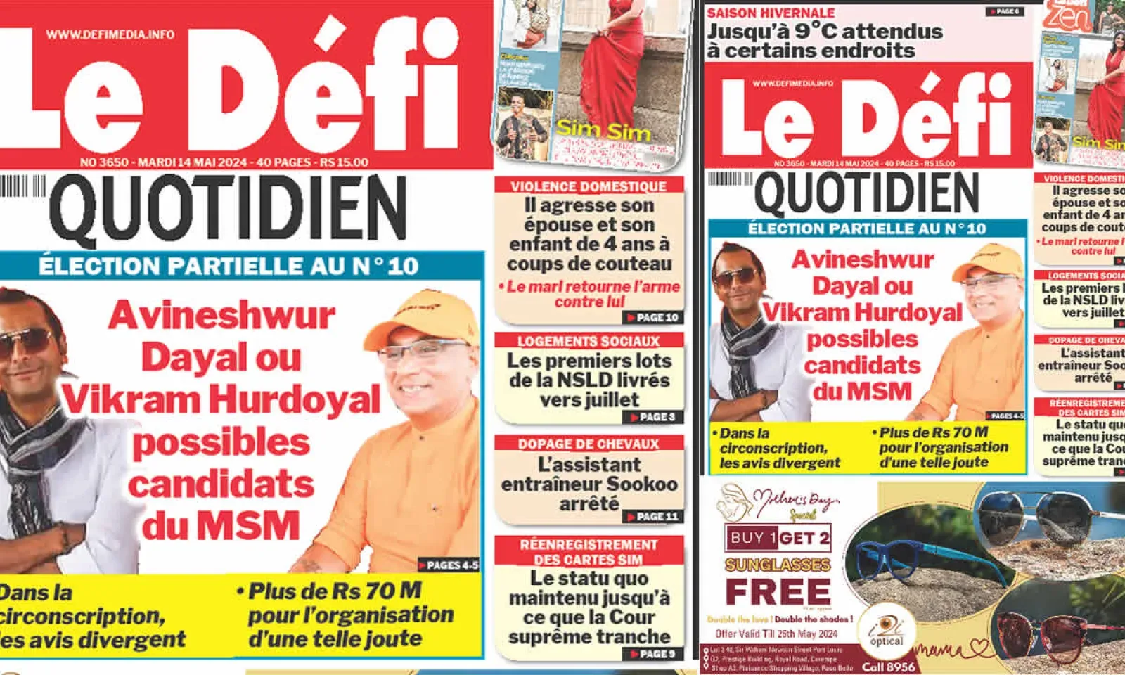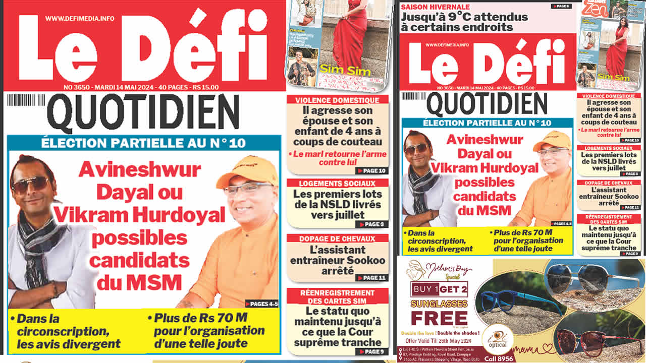 ? Voici la Une du Défi Quotidien. Le journal est en vente à Rs 15 l'exemplaire aux endroits habituels (supermarchés, boutiques, tabagies, superettes). Bonne lecture !