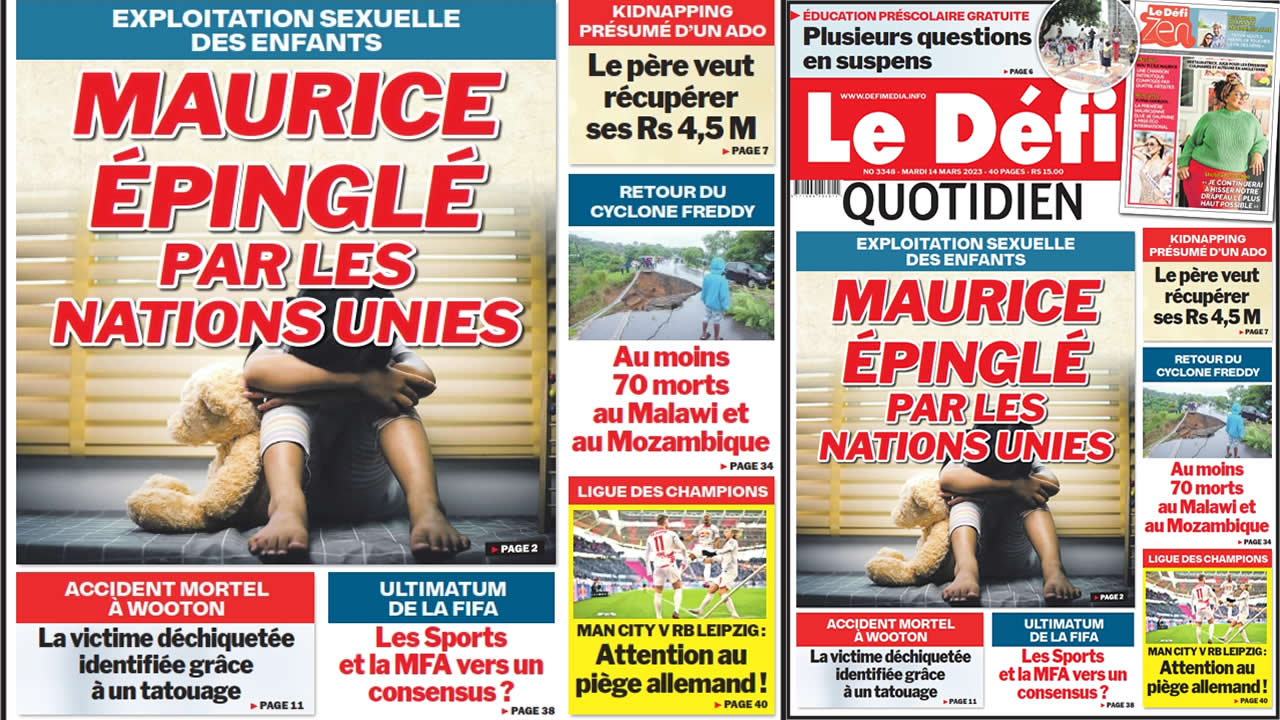 ? Voici la Une du Défi Quotidien. Le journal est en vente à Rs 15 l'exemplaire aux endroits habituels (supermarchés, boutiques, tabagies, superettes). Bonne lecture !