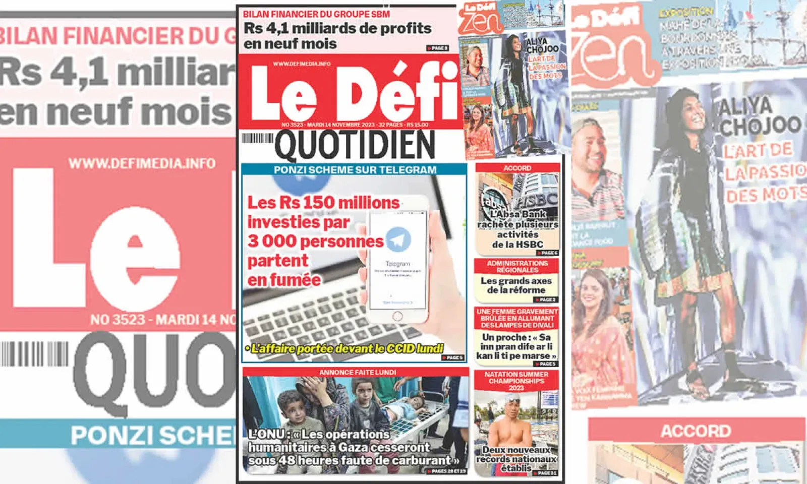 Voici la une du Défi Quotidien de ce Mardi 14 Novembre 2023