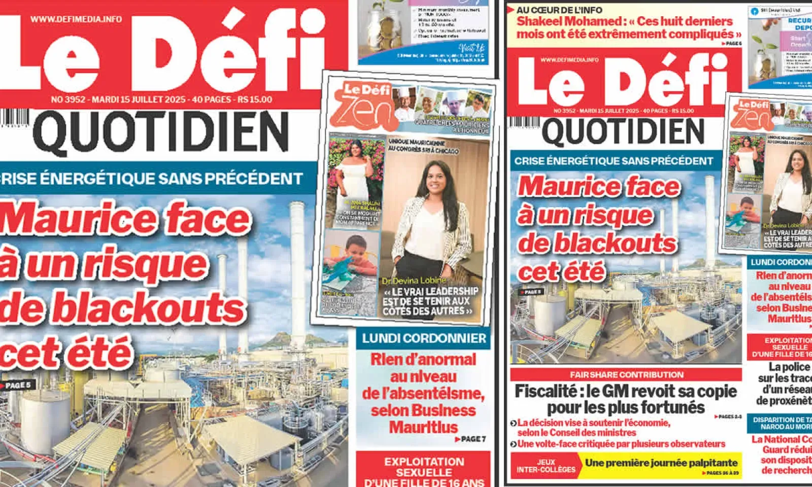 ? Voici la Une du Défi Quotidien. Le journal est en vente à Rs 15 l'exemplaire aux endroits habituels (supermarchés, boutiques, tabagies, superettes). Bonne lecture !