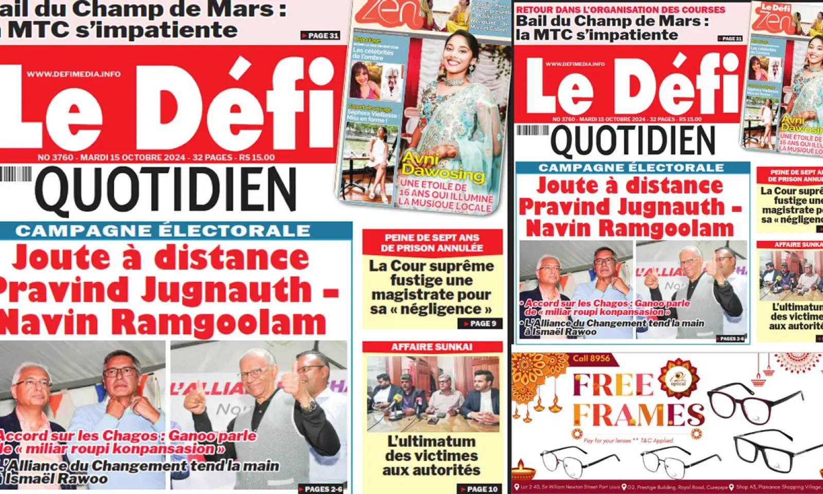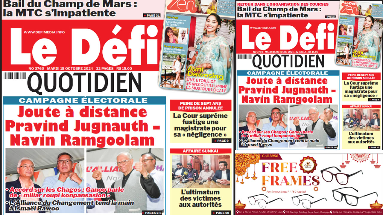 ? Voici la Une du Défi Quotidien. Le journal est en vente à Rs 15 l'exemplaire aux endroits habituels (supermarchés, boutiques, tabagies, superettes). Bonne lecture !