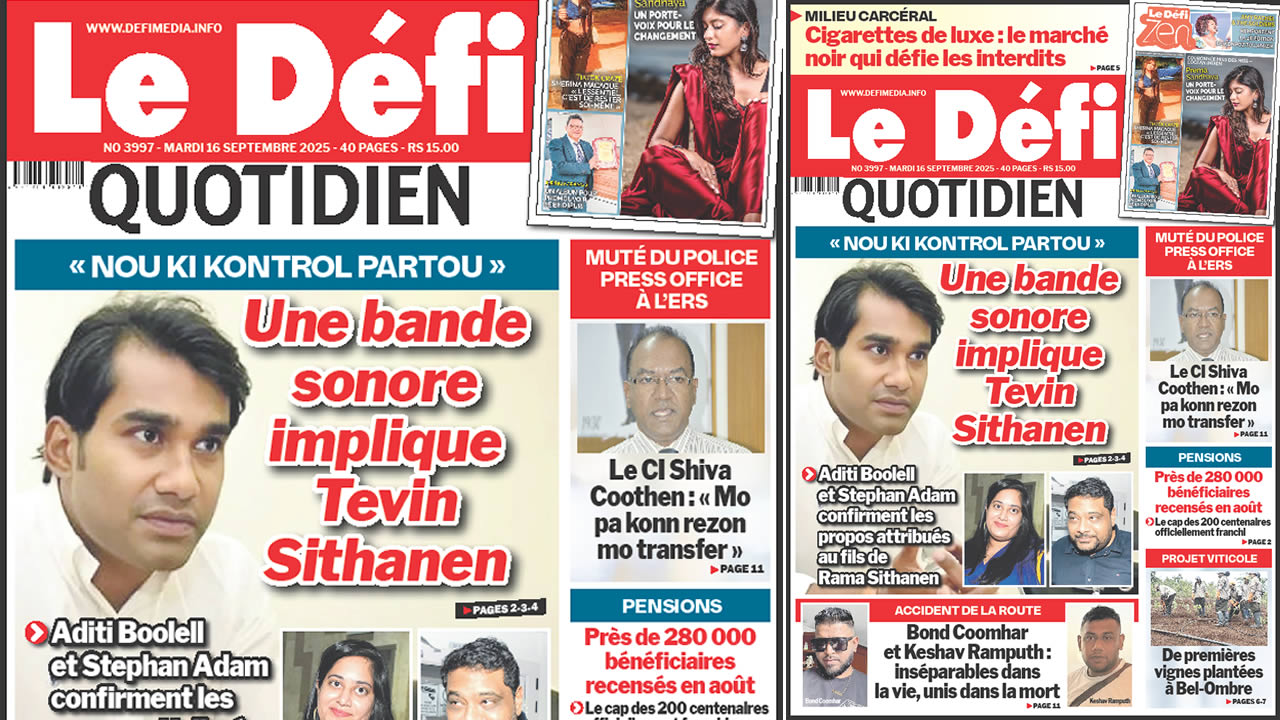 ? Voici la Une du Défi Quotidien. Le journal est en vente à Rs 15 l'exemplaire aux endroits habituels (supermarchés, boutiques, tabagies, superettes). Bonne lecture !