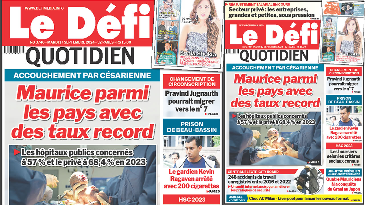 ? Voici la Une du Défi Quotidien. Le journal est en vente à Rs 15 l'exemplaire aux endroits habituels (supermarchés, boutiques, tabagies, superettes). Bonne lecture !