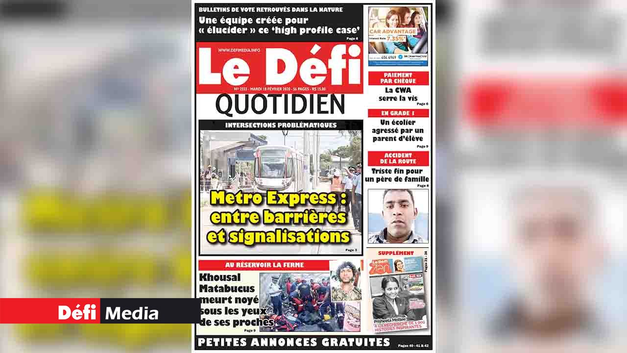 Voici la Une du Defi Quotidien de ce mardi 18 février 2020