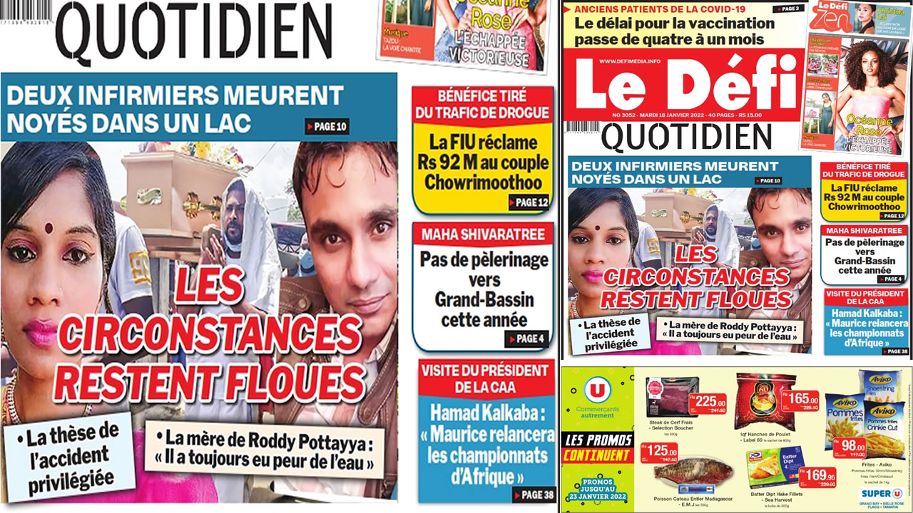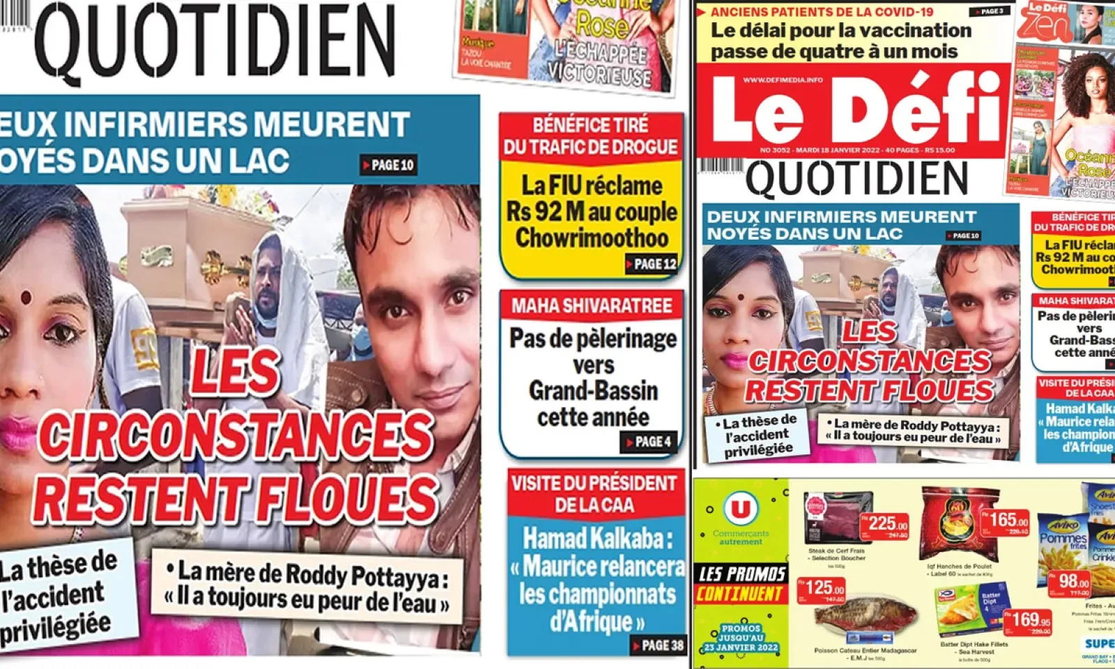 ? Voici la Une du Défi Quotidien. Le journal est en vente à Rs 15 l'exemplaire aux endroits habituels (supermarchés, boutiques, tabagies, superettes). Bonne lecture !