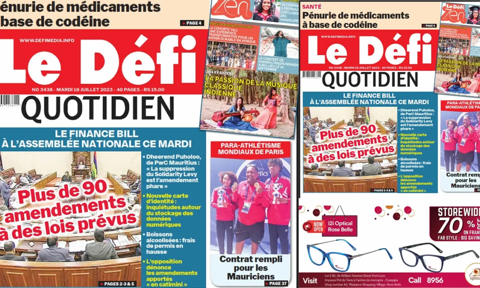 ? Voici la Une du Défi Quotidien. Le journal est en vente à Rs 15 l'exemplaire aux endroits habituels (supermarchés, boutiques, tabagies, superettes). Bonne lecture !