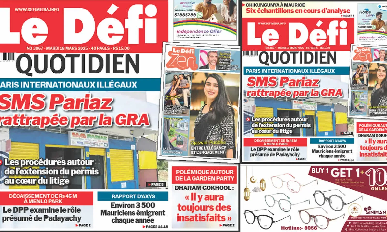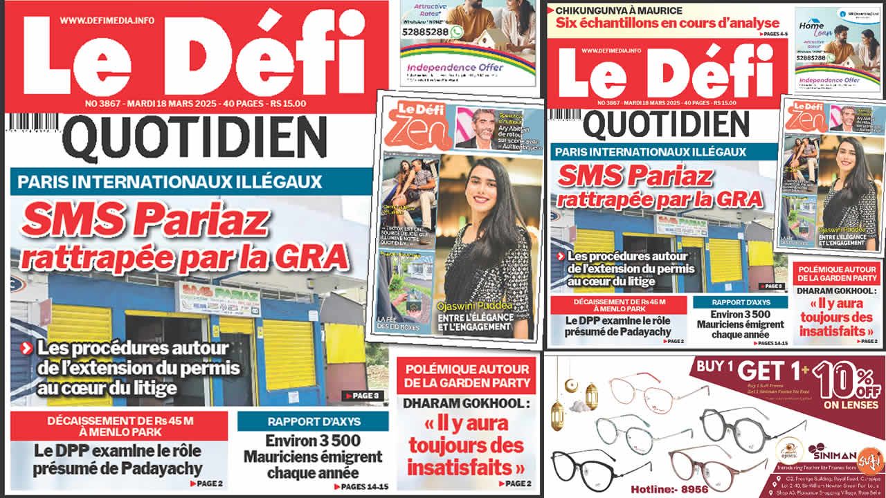 ? Voici la Une du Défi Quotidien. Le journal est en vente à Rs 15 l'exemplaire aux endroits habituels (supermarchés, boutiques, tabagies, superettes). Bonne lecture !