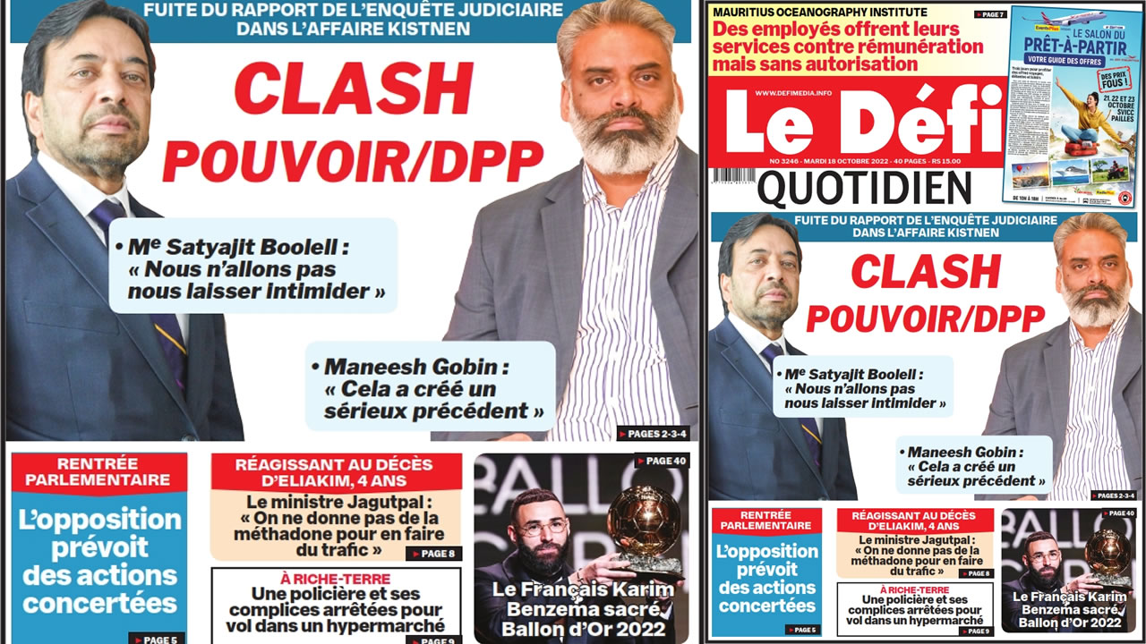 ? Voici la Une du Défi Quotidien. Le journal est en vente à Rs 15 l'exemplaire aux endroits habituels (supermarchés, boutiques, tabagies, superettes). Bonne lecture !