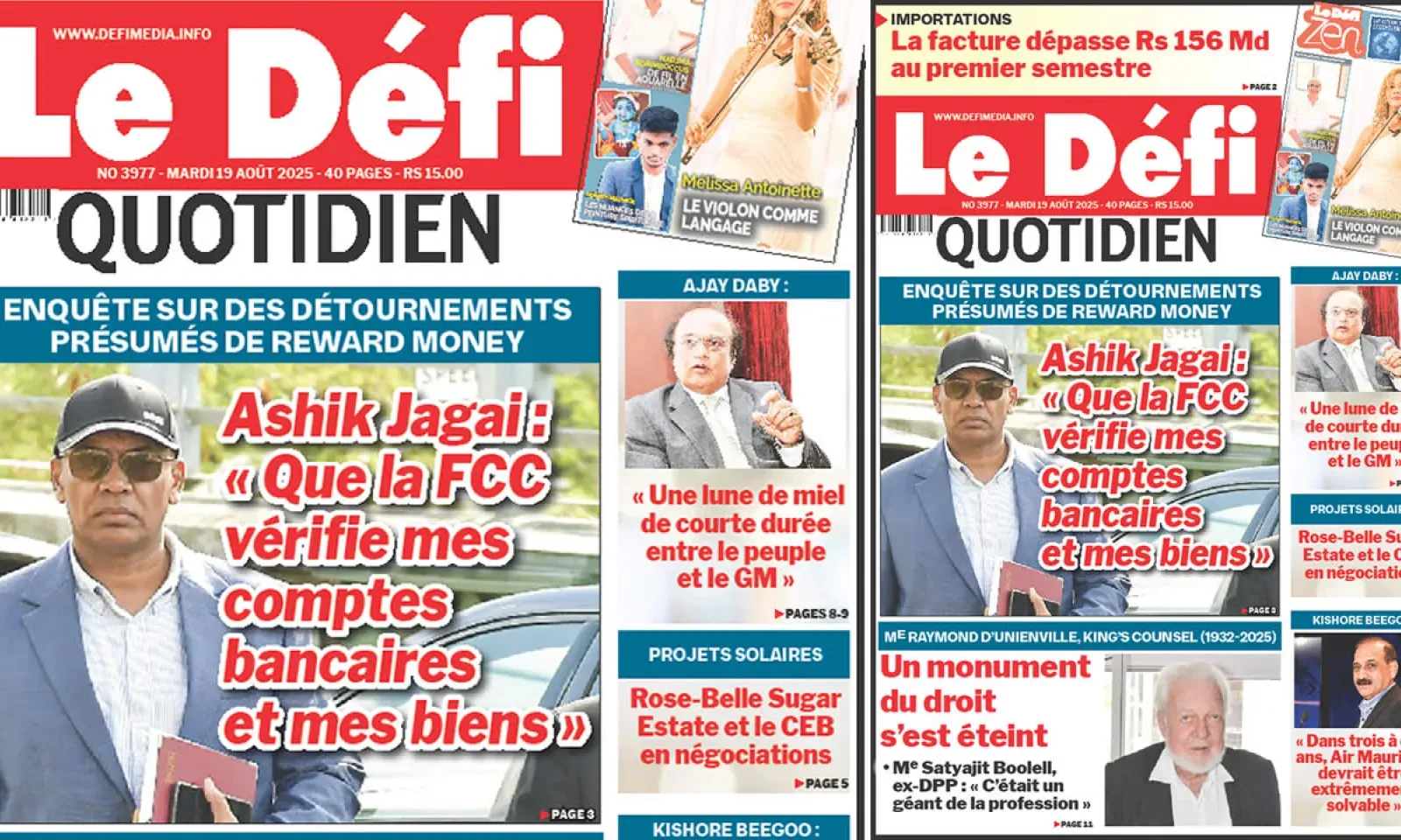 Voici la une du Défi Quotidien de ce Mardi 19 Août 2025