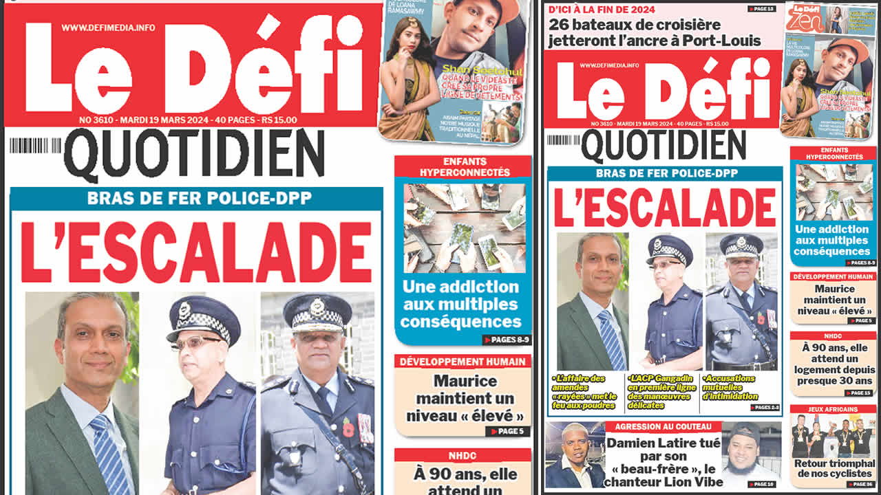 ? Voici la Une du Défi Quotidien. Le journal est en vente à Rs 15 l'exemplaire aux endroits habituels (supermarchés, boutiques, tabagies, superettes). Bonne lecture !