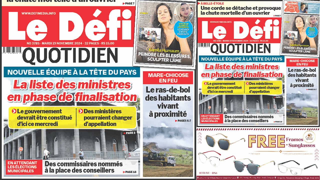 ? Voici la Une du Défi Quotidien. Le journal est en vente à Rs 15 l'exemplaire aux endroits habituels (supermarchés, boutiques, tabagies, superettes). Bonne lecture !