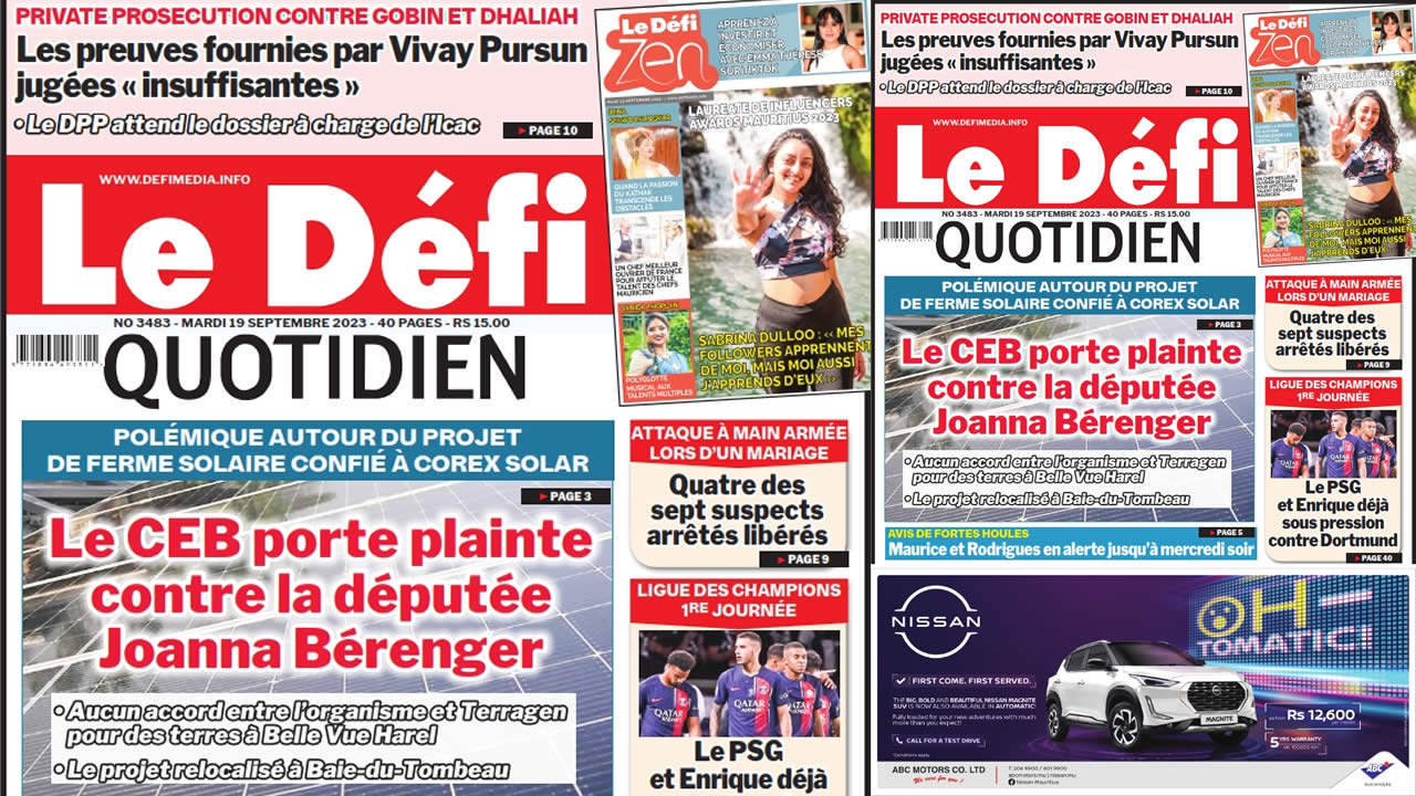 Voici la une du Défi Quotidien de ce Mardi 19 Septembre 2023