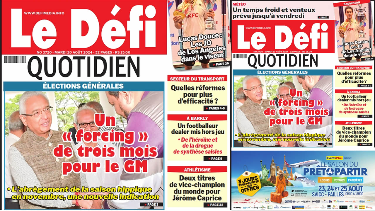 ? Voici la Une du Défi Quotidien. Le journal est en vente à Rs 15 l'exemplaire aux endroits habituels (supermarchés, boutiques, tabagies, superettes). Bonne lecture !