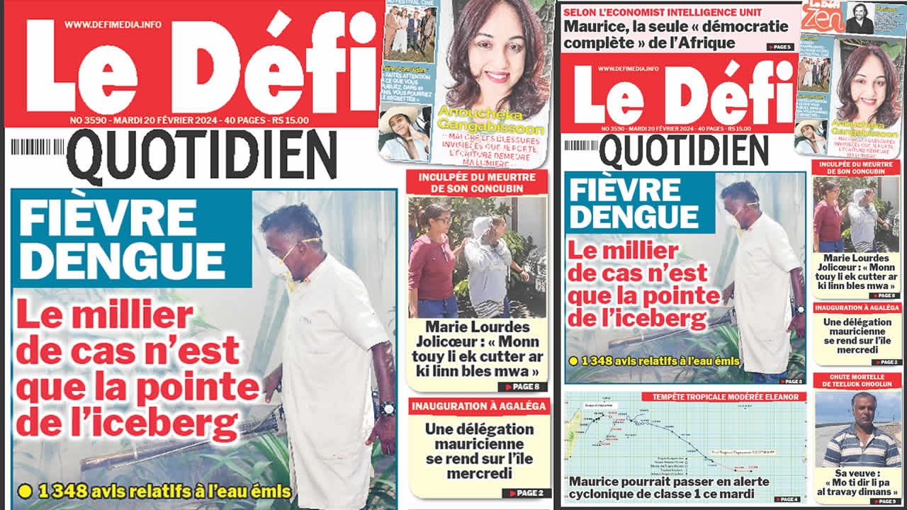 ? Voici la Une du Défi Quotidien. Le journal est en vente à Rs 15 l'exemplaire aux endroits habituels (supermarchés, boutiques, tabagies, superettes). Bonne lecture !