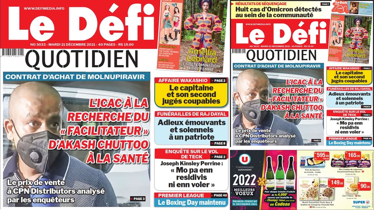 ? Voici la Une du Défi Quotidien. Le journal est en vente à Rs 15 l'exemplaire aux endroits habituels (supermarchés, boutiques, tabagies, superettes). Bonne lecture !