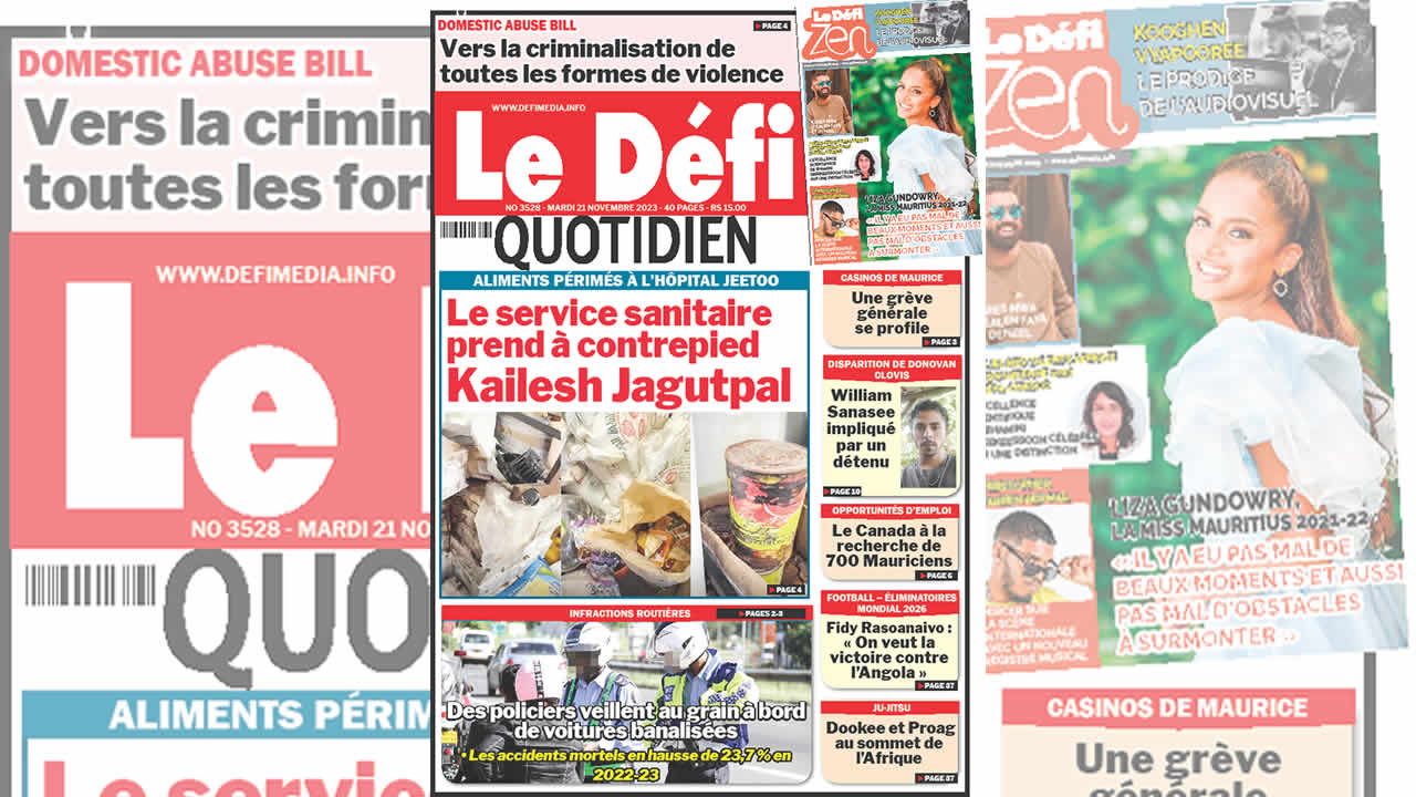 ? Voici la Une du Défi Quotidien. Le journal est en vente à Rs 15 l'exemplaire aux endroits habituels (supermarchés, boutiques, tabagies, superettes). Bonne lecture !