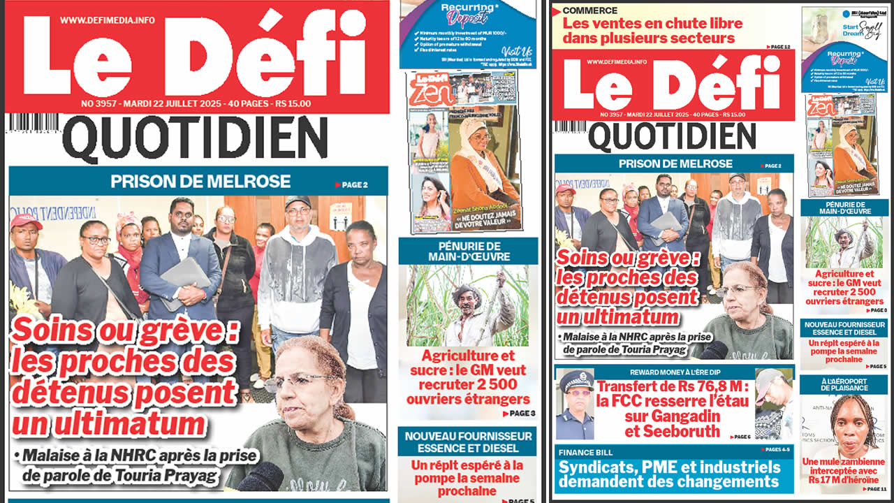 ? Voici la Une du Défi Quotidien. Le journal est en vente à Rs 15 l'exemplaire aux endroits habituels (supermarchés, boutiques, tabagies, superettes). Bonne lecture !