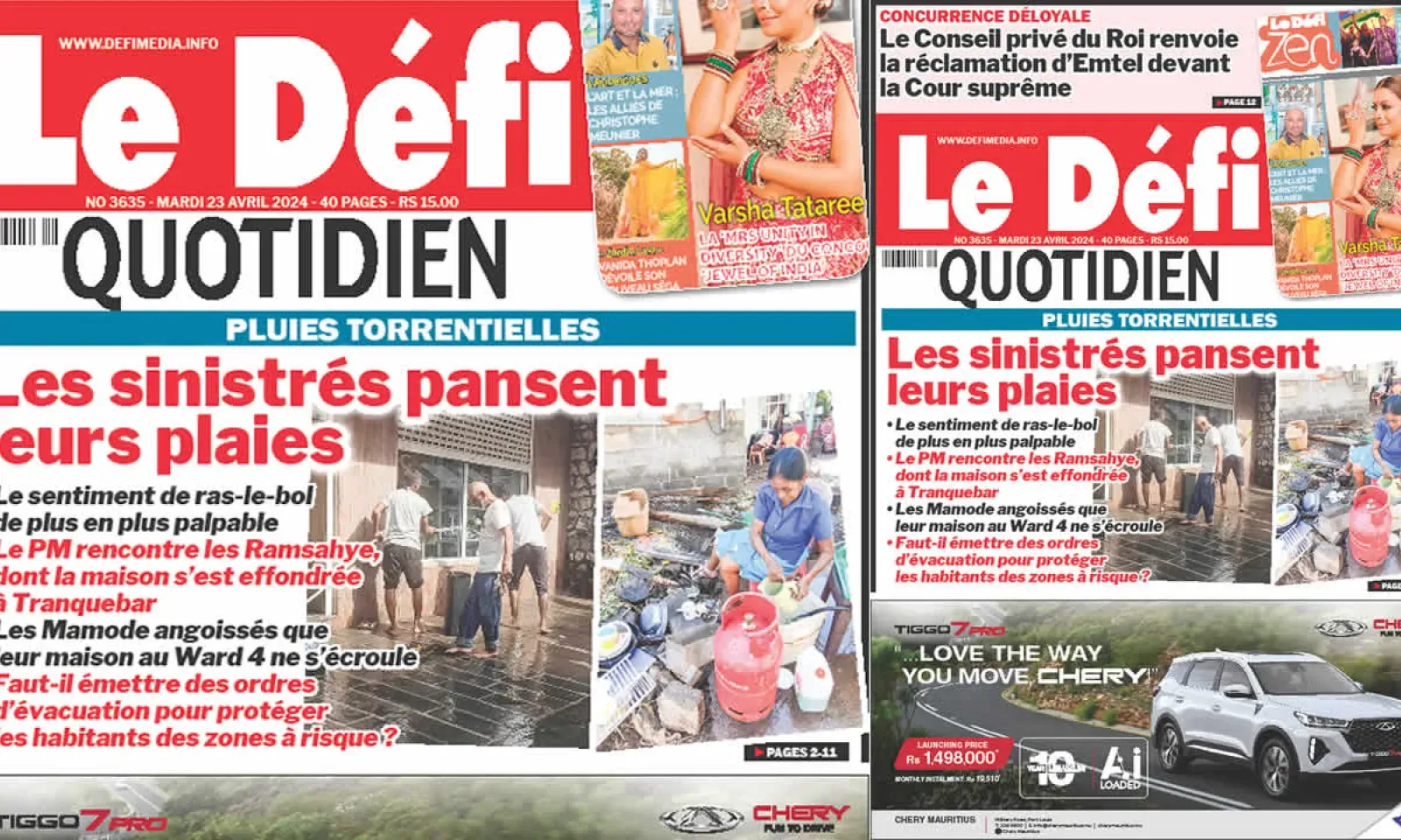 ? Voici la Une du Défi Quotidien. Le journal est en vente à Rs 15 l'exemplaire aux endroits habituels (supermarchés, boutiques, tabagies, superettes). Bonne lecture !